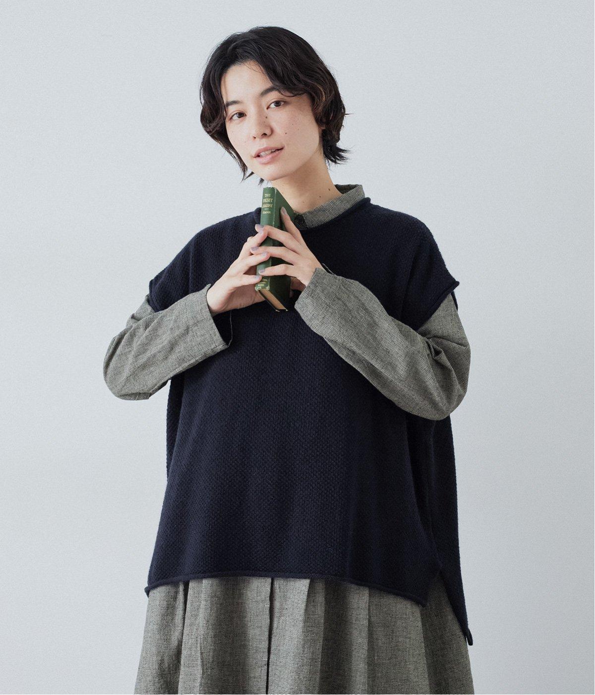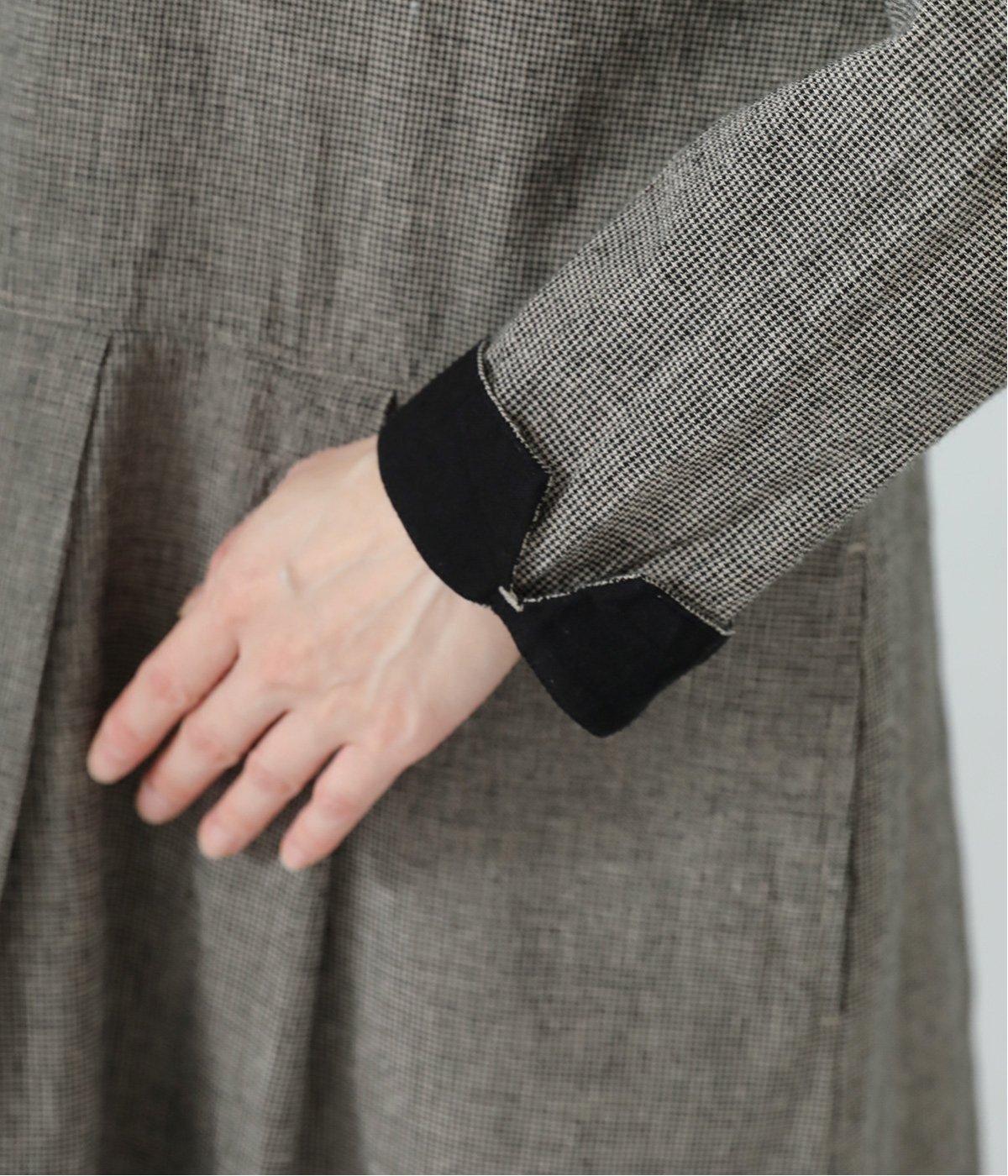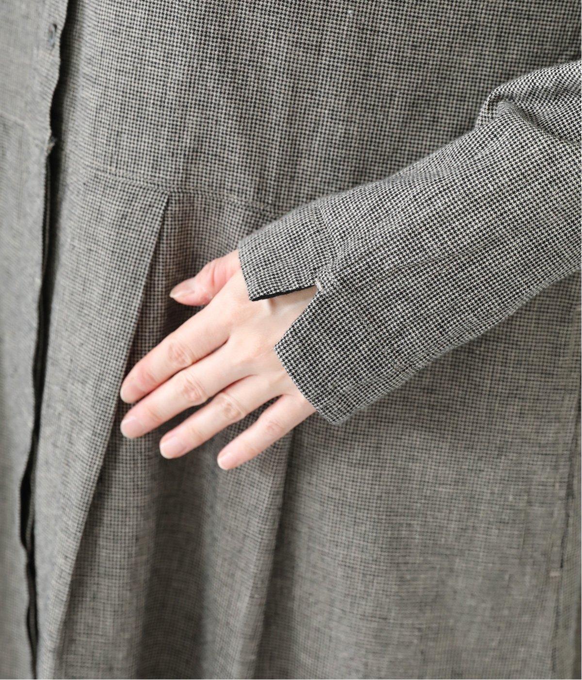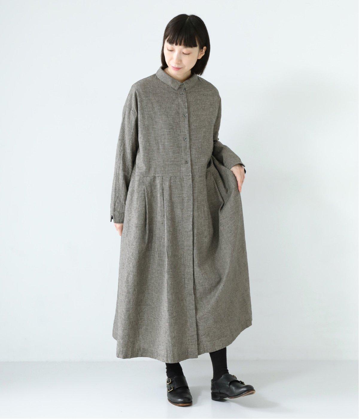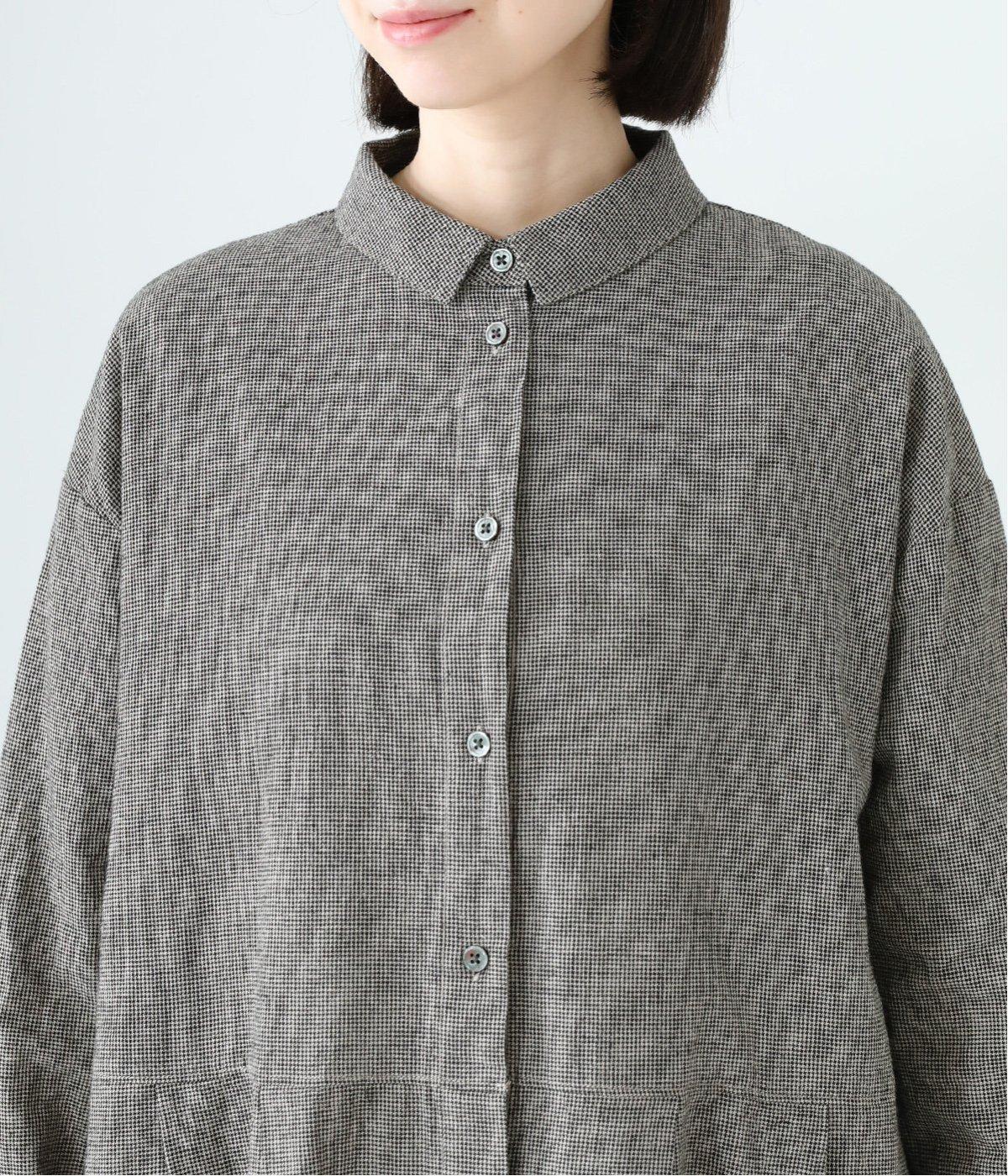 コットンリネン先染め切替シャツワンピース(マイクロチェック-F)