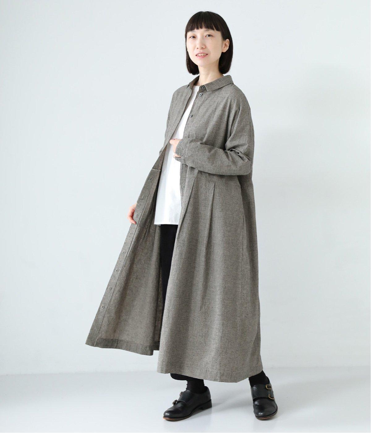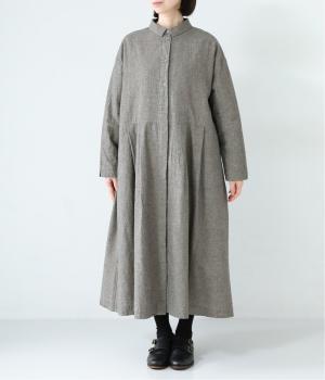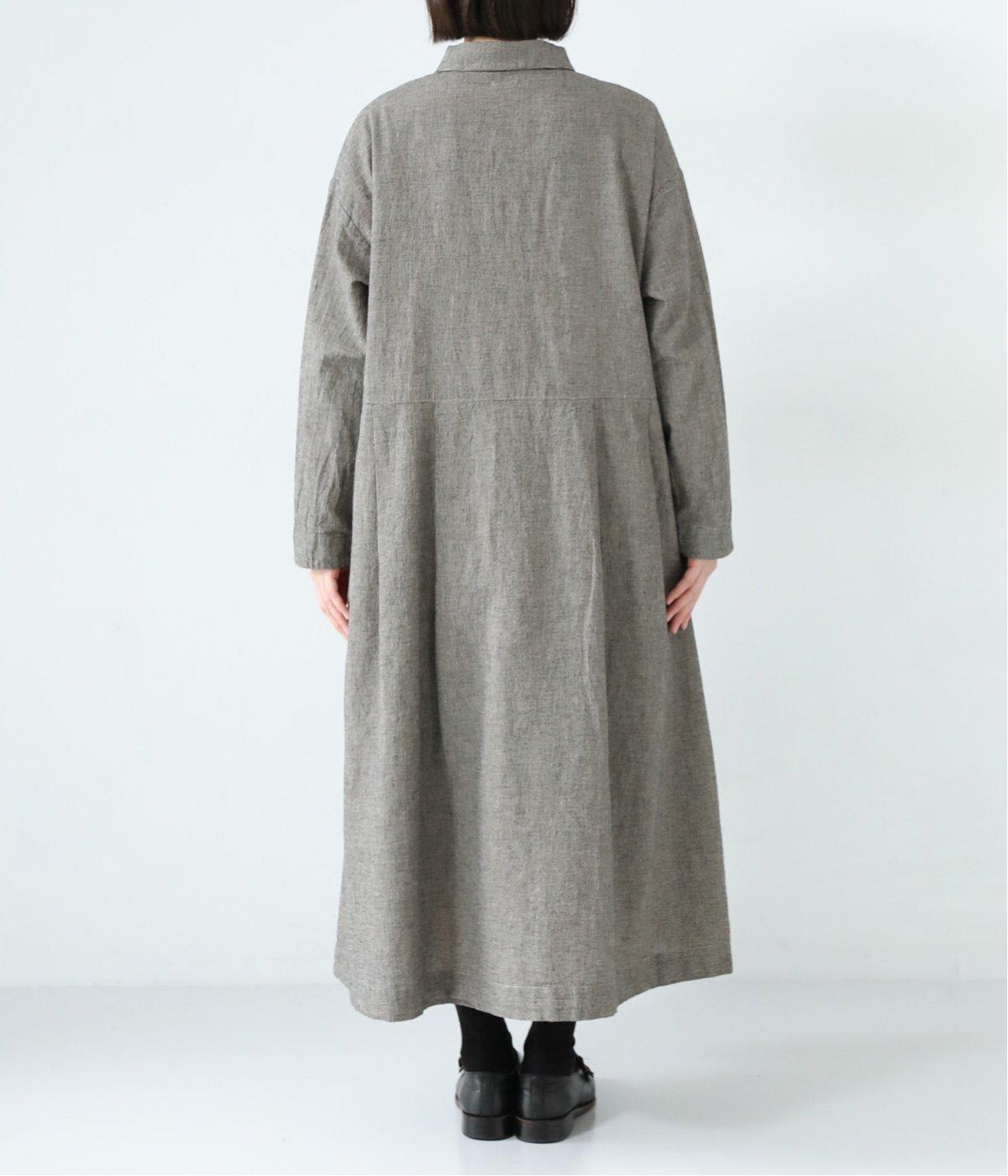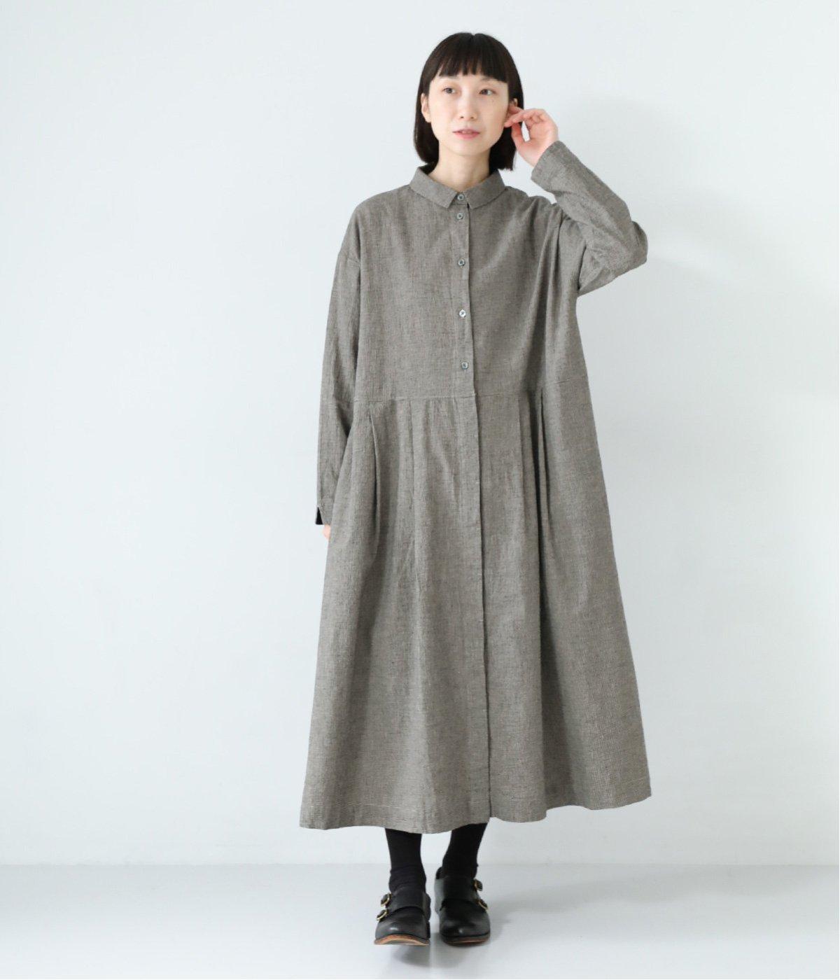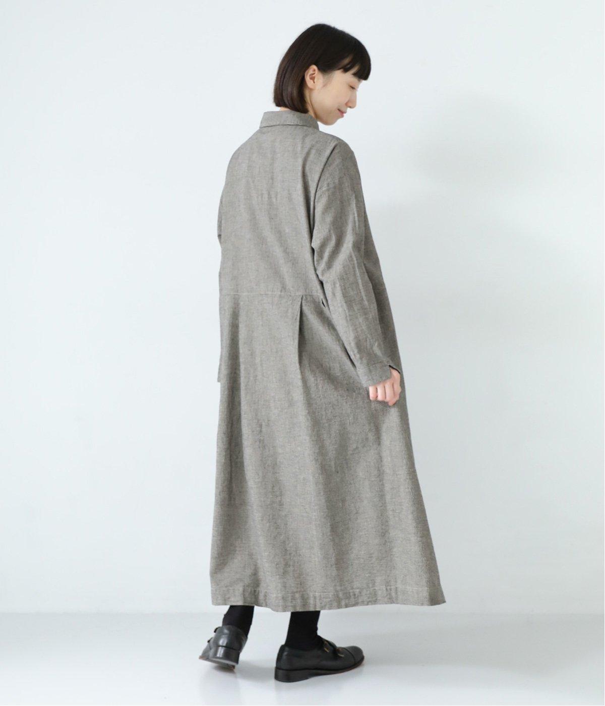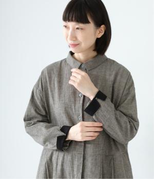 コットンリネン先染め切替シャツワンピース