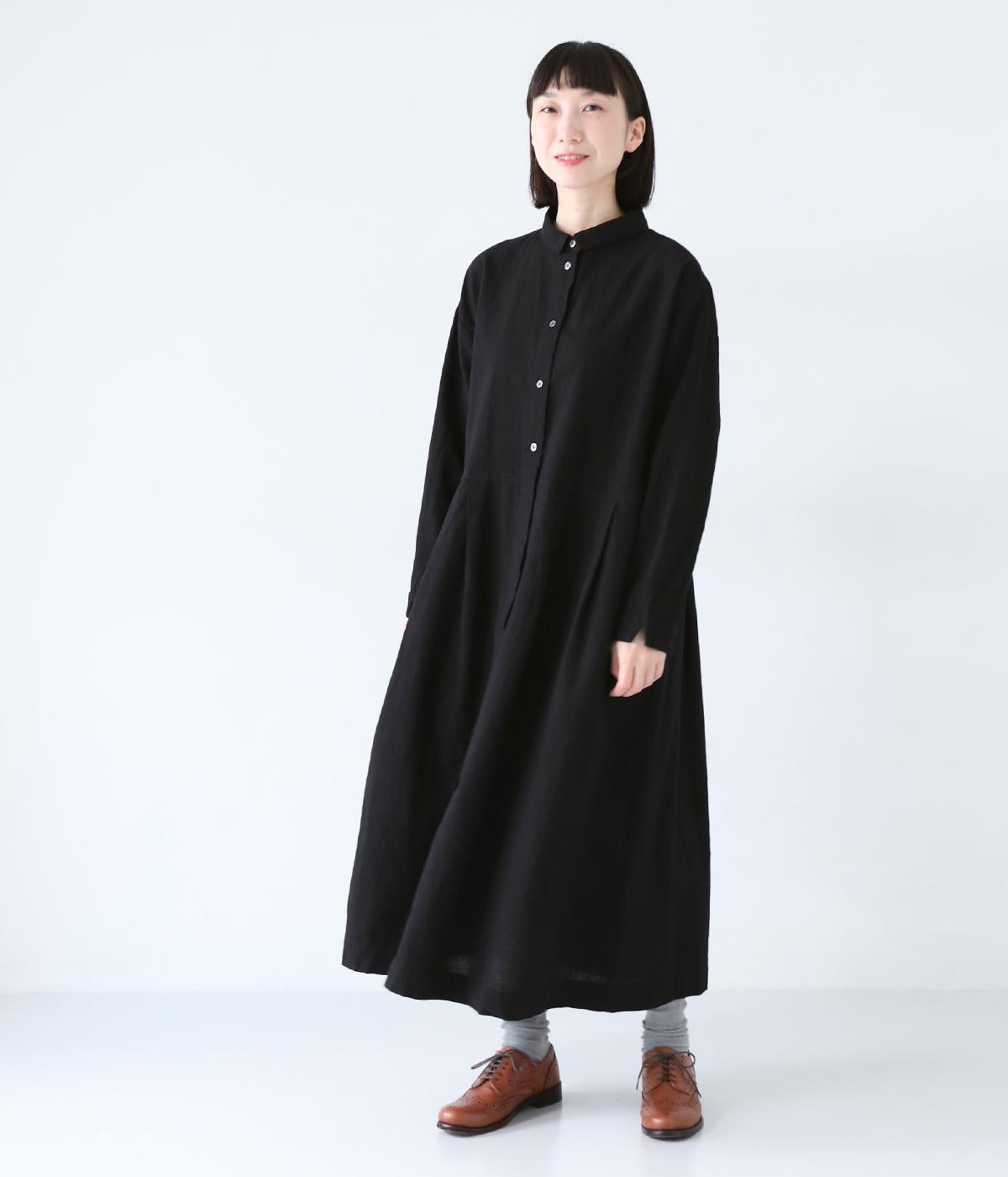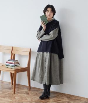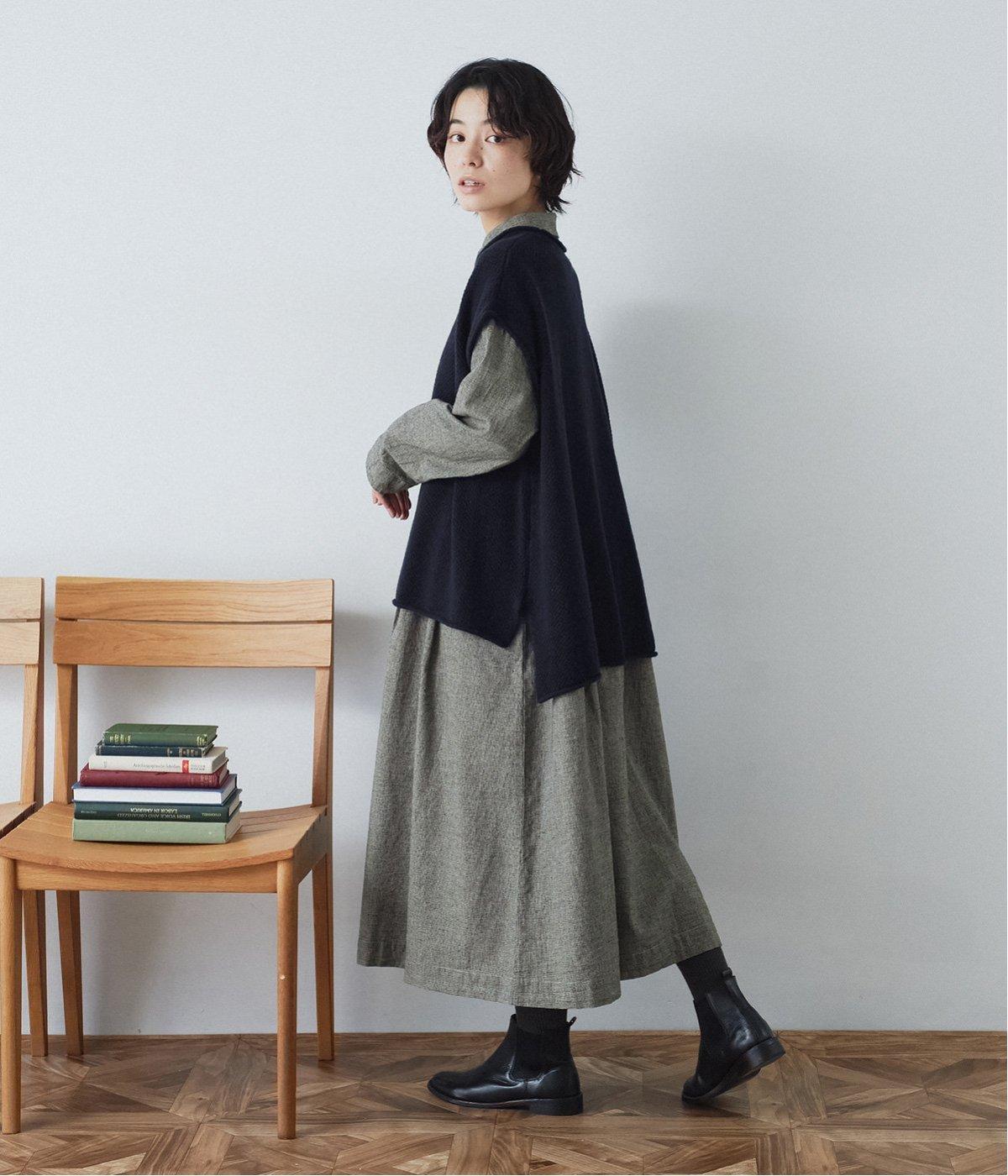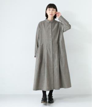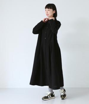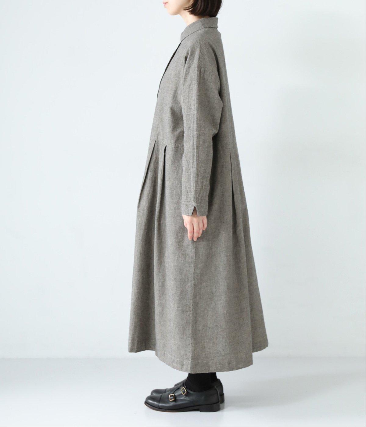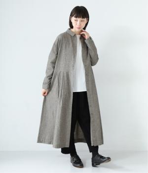 コットンリネン先染め切替シャツワンピース