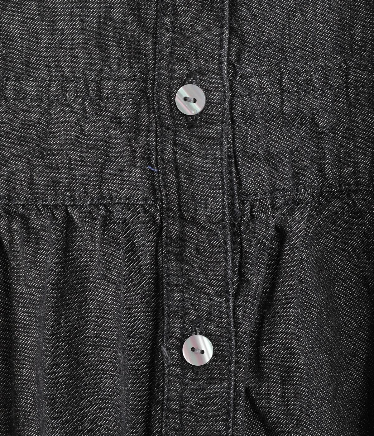 通気性が良く、軽やかな着心地を叶えるコットンとリネンのブレンド素材。適度なハリとやわらかさを両立したデニム生地は、着るほどに風合いが増していくのも魅力です。