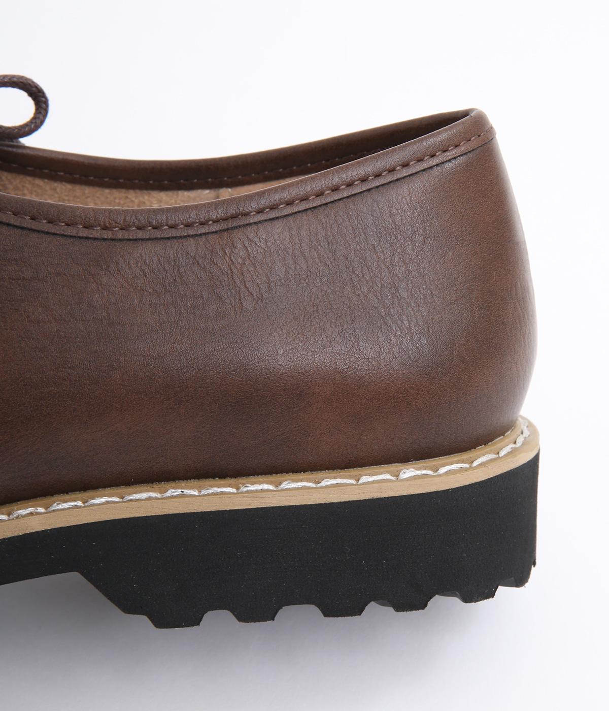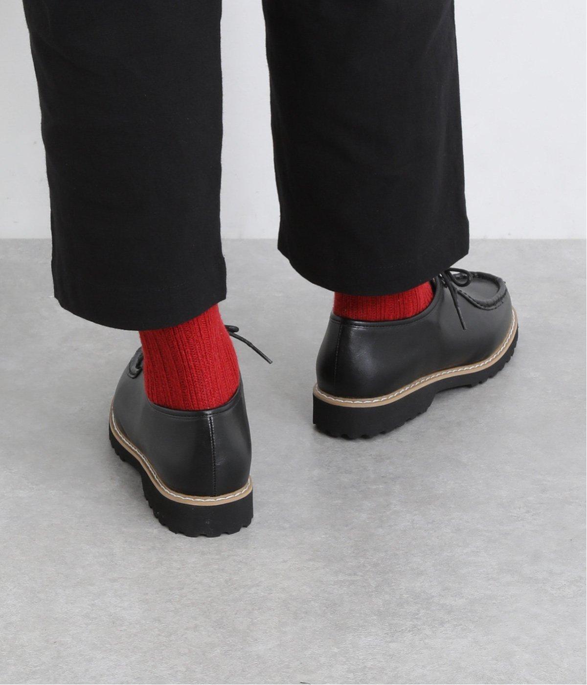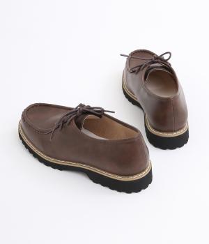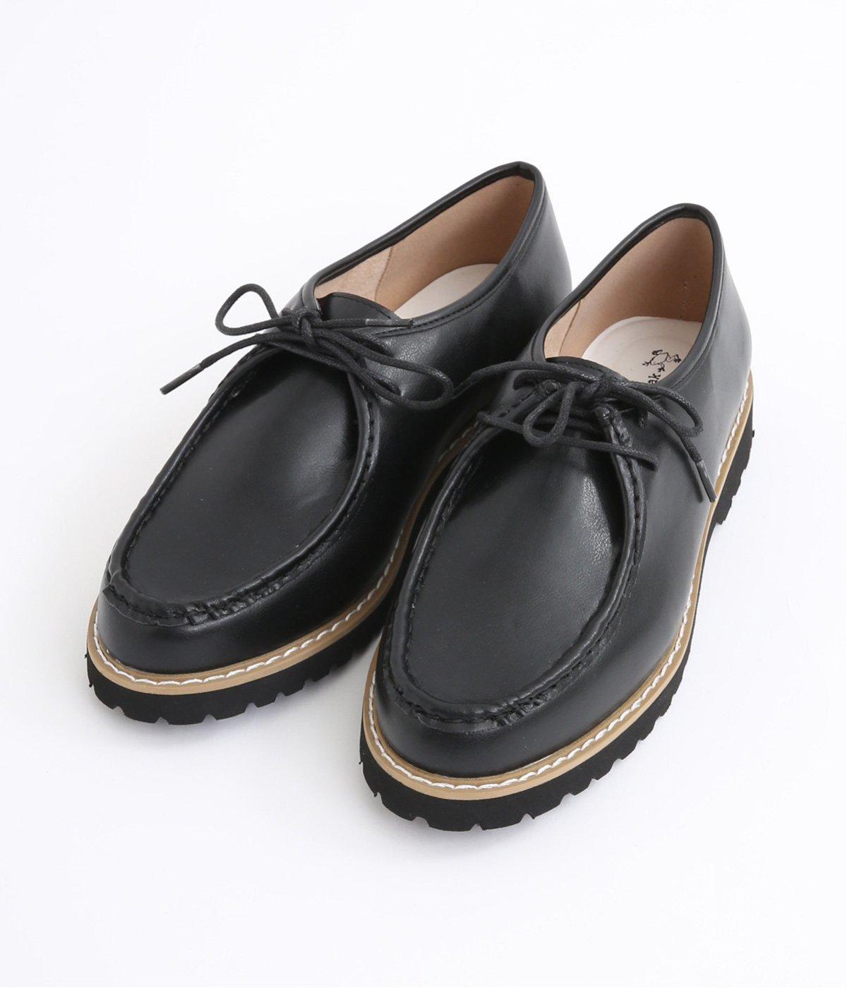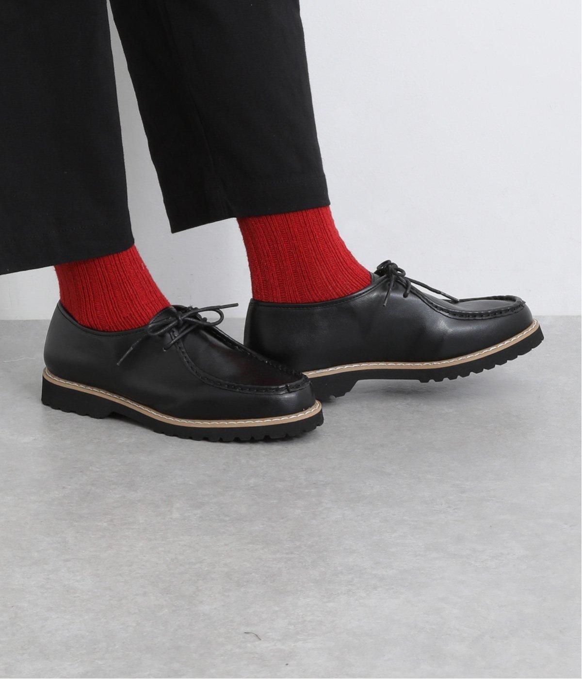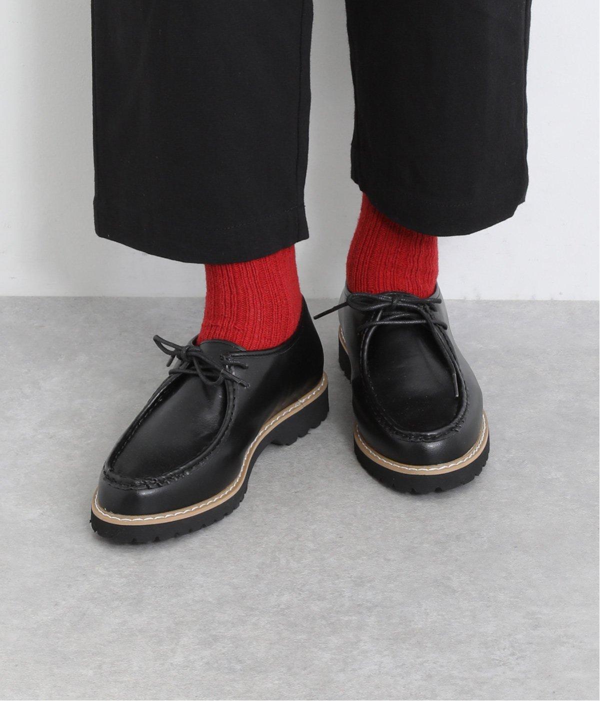 重厚感のあるブラックソールにベージュのコバがほどよいアクセントになっています。甲を深くおおうマニッシュテイストなデザインが着こなしのポイントになり、ほどよくカジュアルダウンしてくれます。