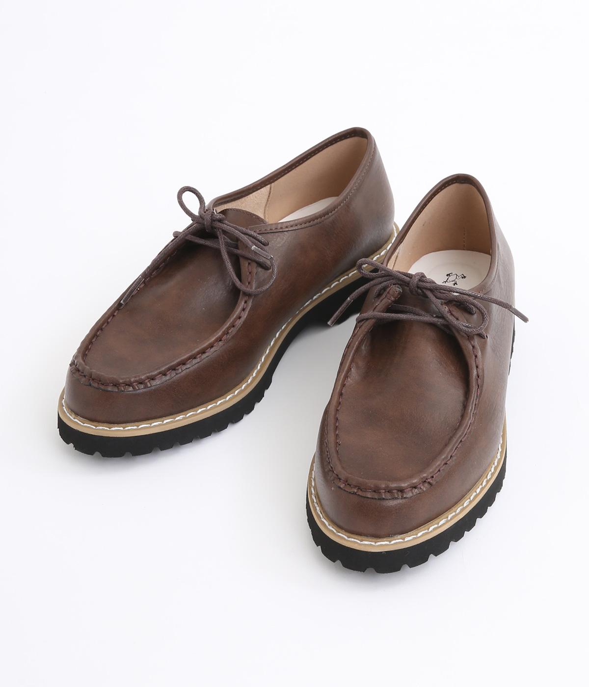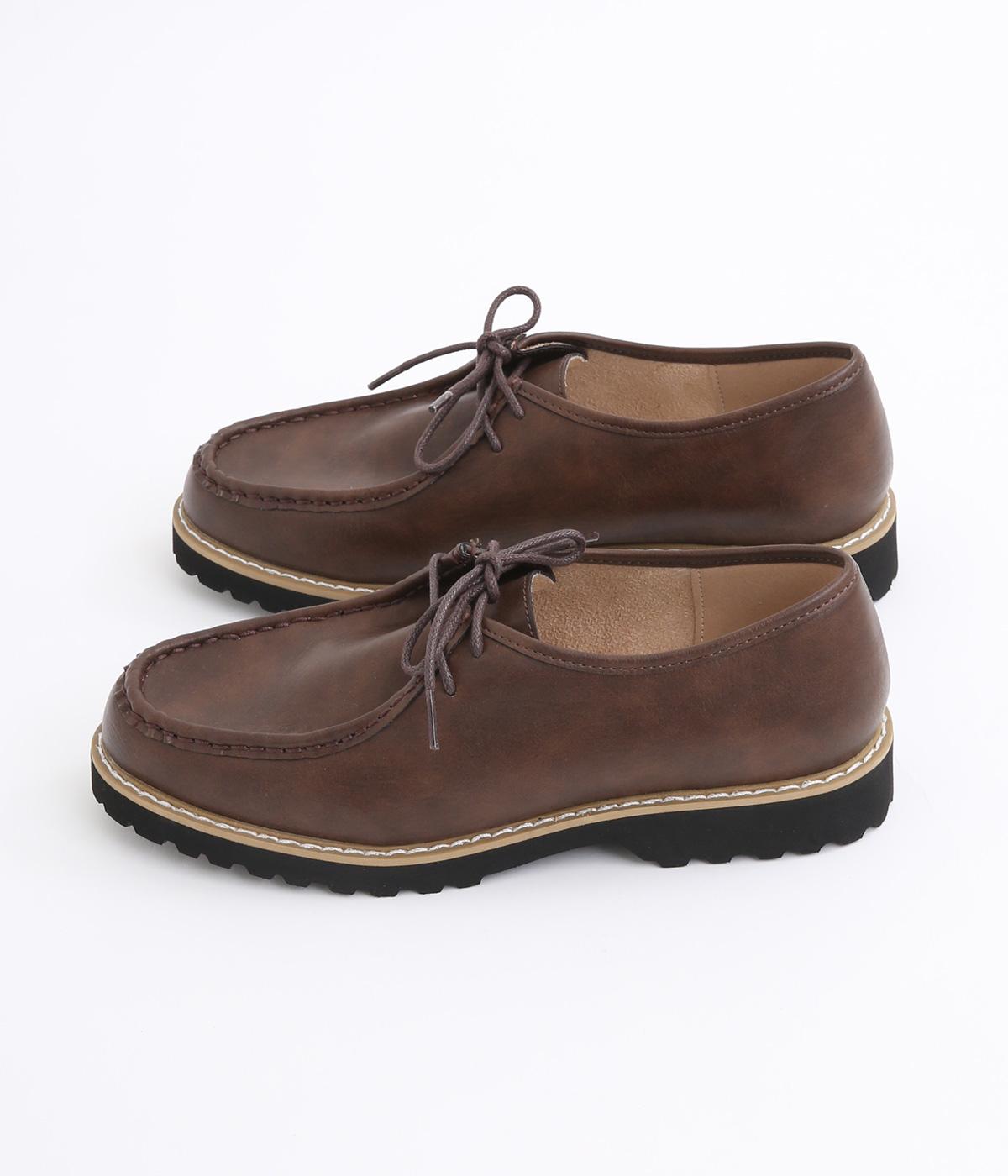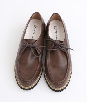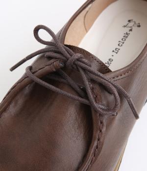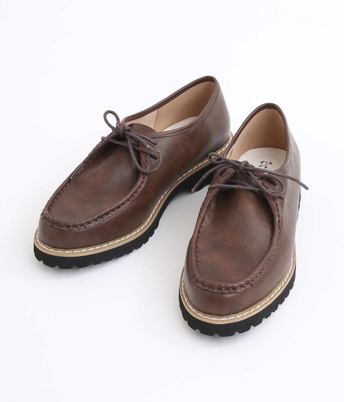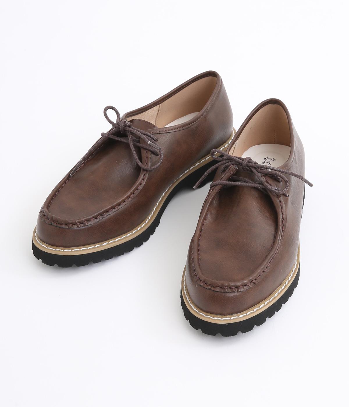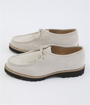 重厚感のあるブラックソールにベージュのコバがほどよいアクセントになっています。甲を深くおおうマニッシュテイストなデザインが着こなしのポイントになり、ほどよくカジュアルダウンしてくれます。