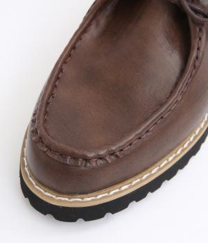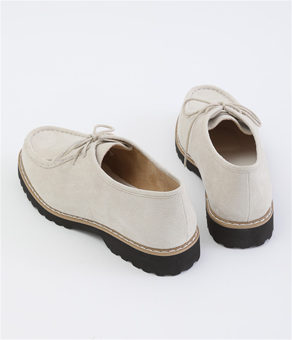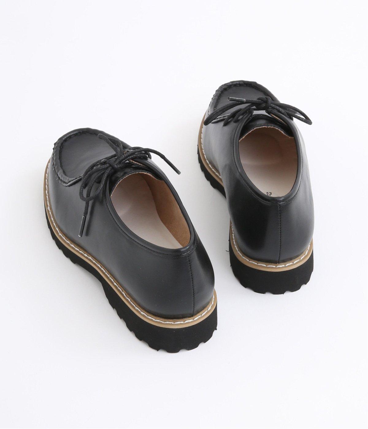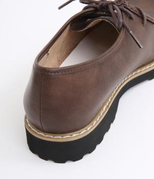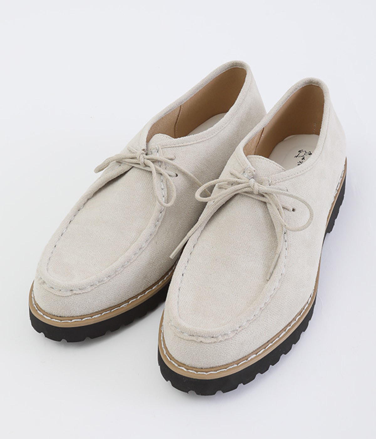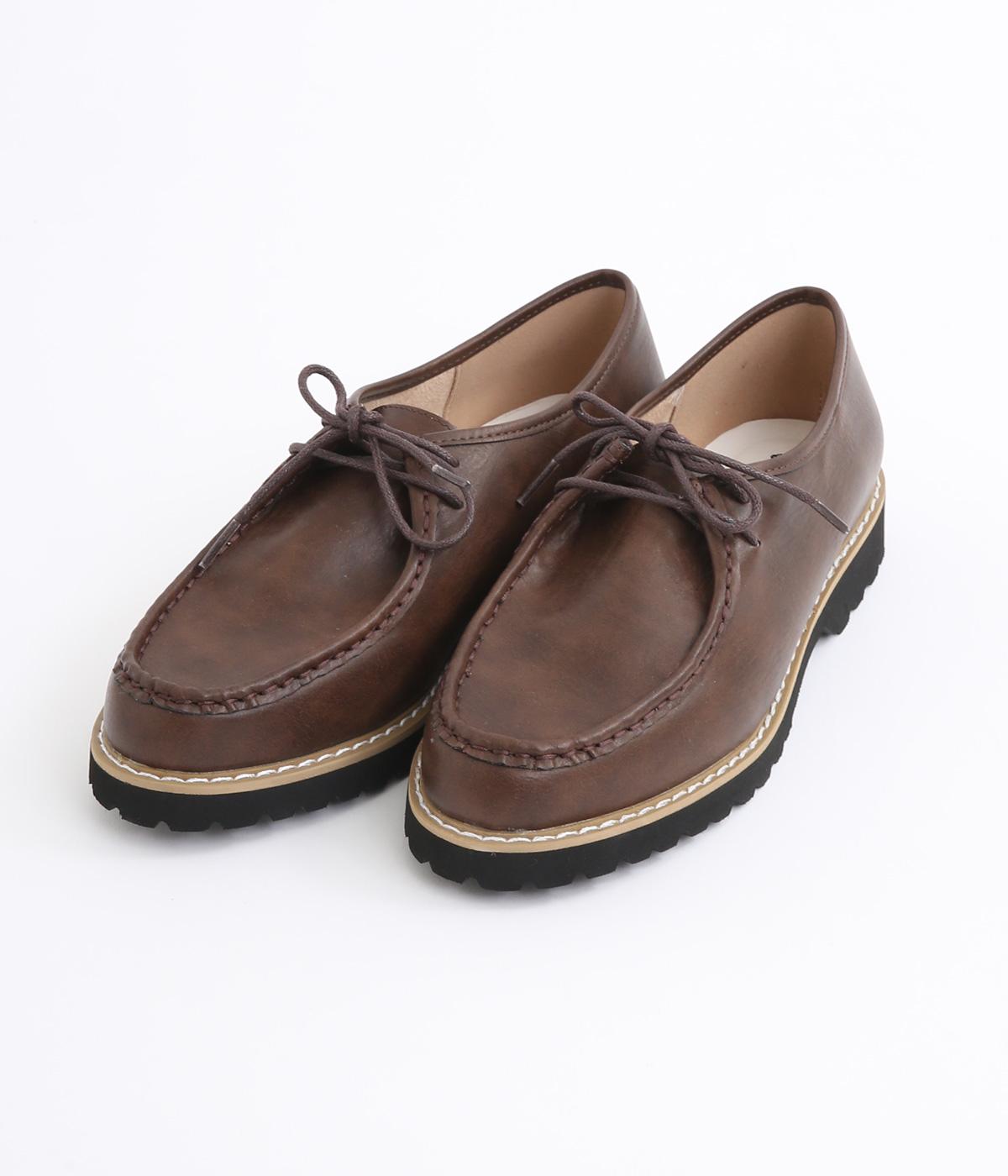 重厚感のあるブラックソールにベージュのコバがほどよいアクセントになっています。甲を深くおおうマニッシュテイストなデザインが着こなしのポイントになり、ほどよくカジュアルダウンしてくれます。
