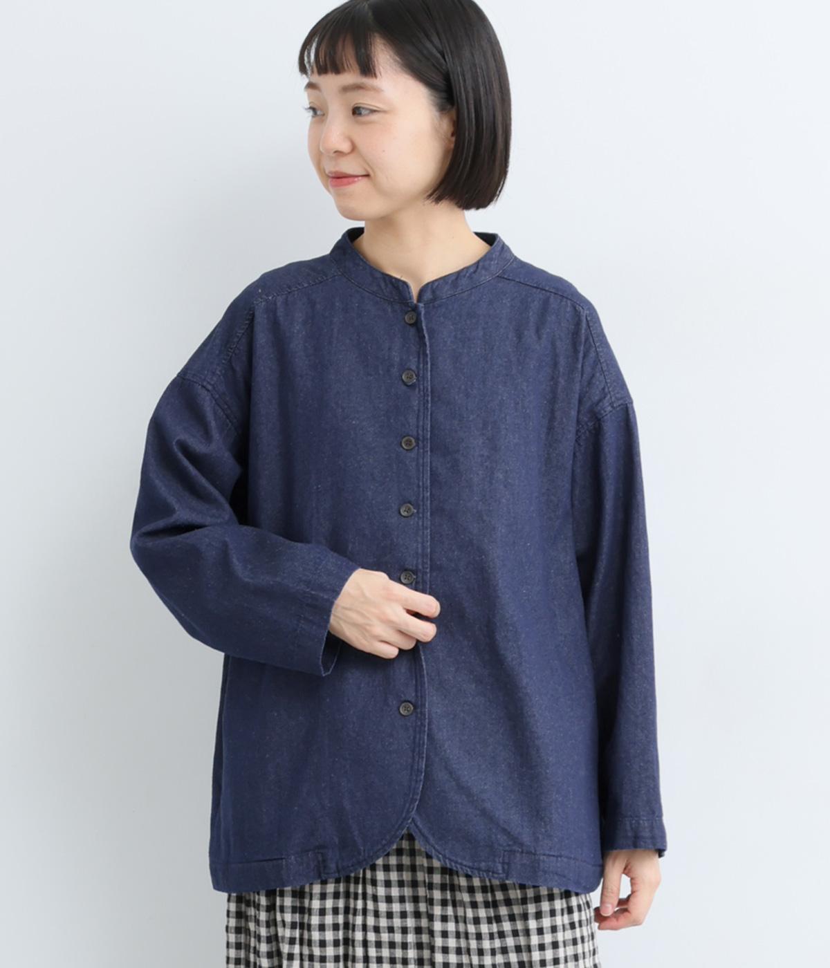 すっきりとしたスタンド襟に主張しすぎない小さめボタンでミニマムにまとめたジャケット。前立て裾はラウンドさせることでカジュアルさを軽減し、やさしい印象に。ラフに羽織りやすくシャツ感覚でメイン使いするのもおすすめです。