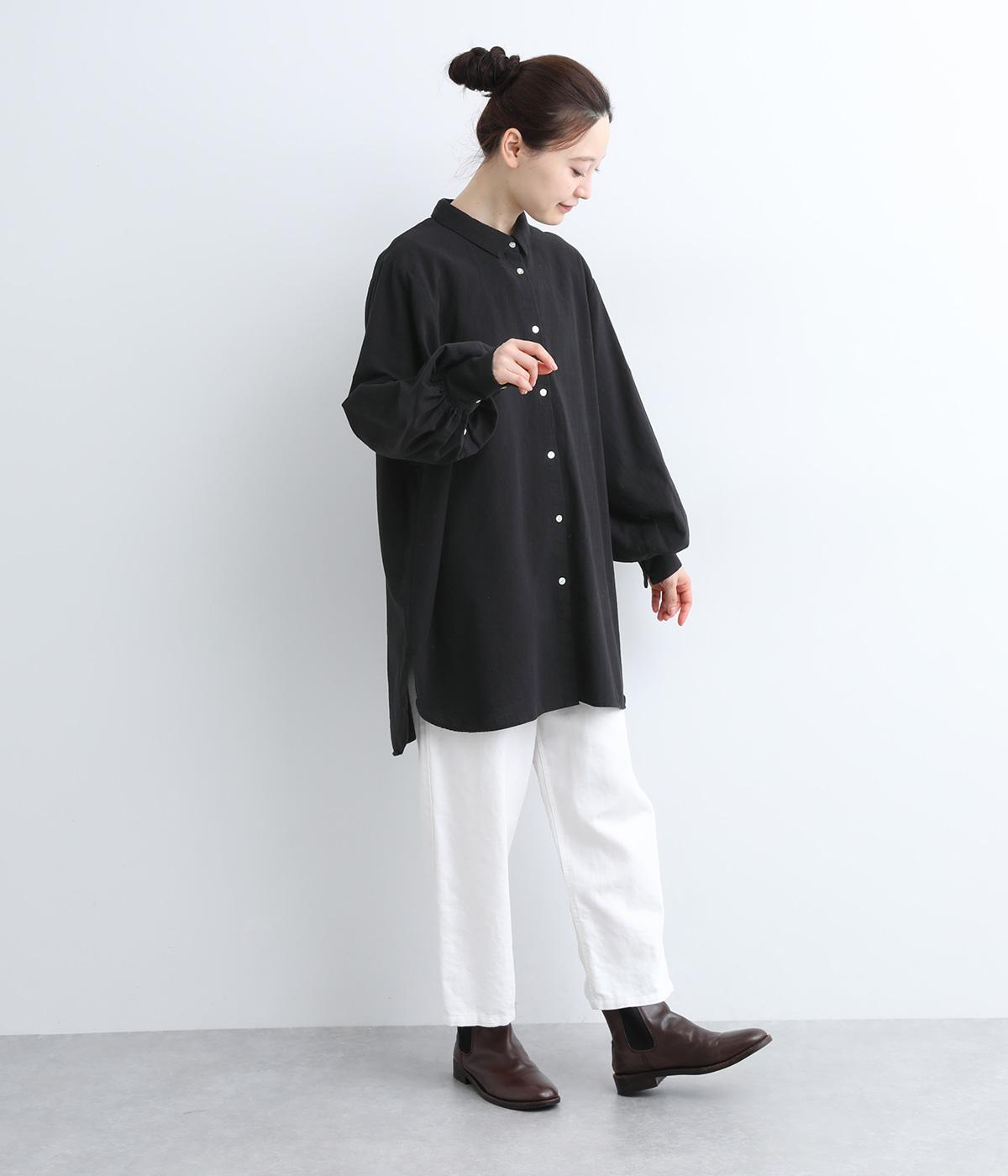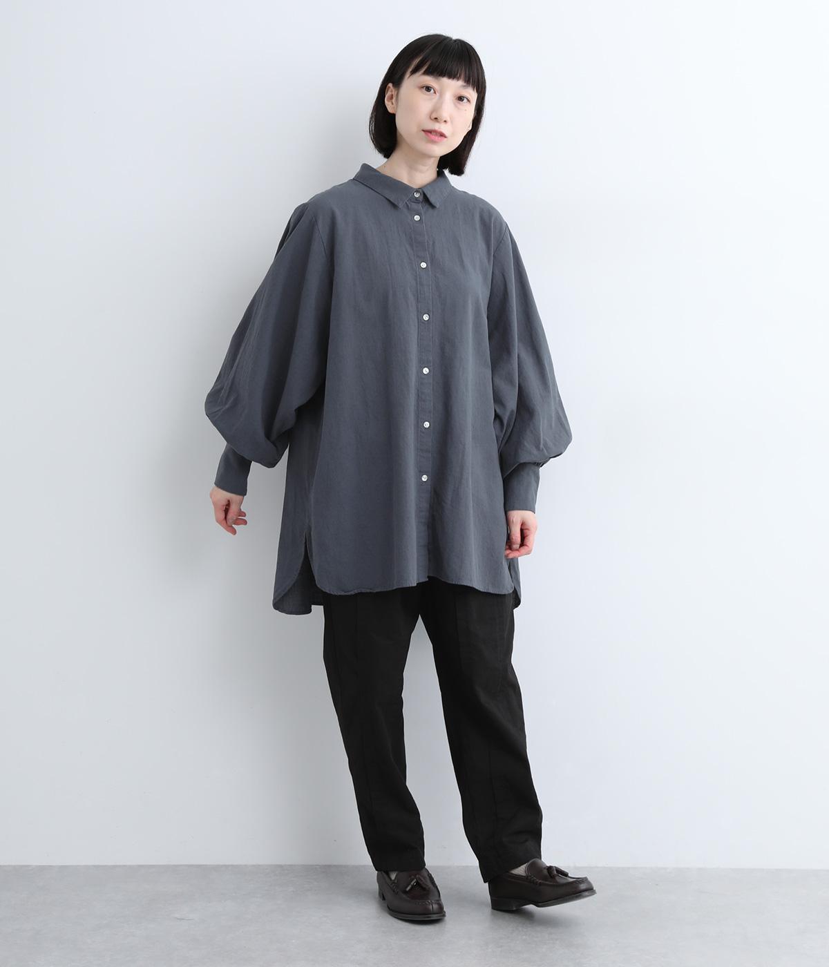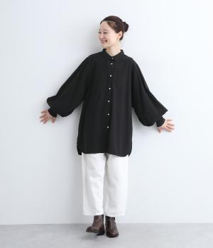 シンプルなディテールゆえに際立つバルーンスリーブが、着映えを叶えるシャツブラウス。スリットの入ったラウンドヘムが、さらに動きを持たせてくれます。デザインはややモードながら、お尻まで隠れるゆったりとしたフォルムで、大人カジュアルに着用いただけます。