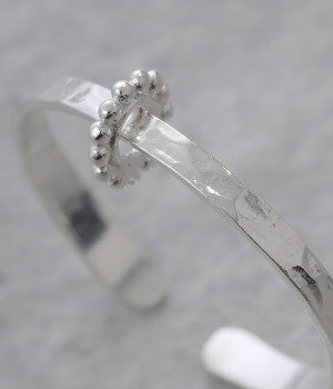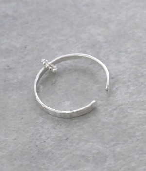美しい輝きを保ったまま耐久性を高めて傷をつきにくくした特性を持つ、シルバー925を使用しています。繊細なシルバーループの表面に打ち込みをほどこした、表情のある仕上がりです。
