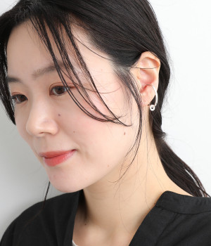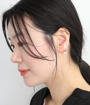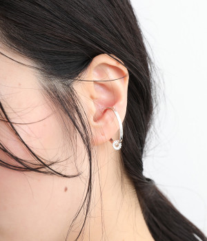 シルバーのとても小さな粒でできたリングがゆれる、存在感たっぷりのイヤーカフです。両端を若干太めにしているのでリングが抜け落ちる心配もありません。さり気なく顔まわりを華やかにしてくれます。