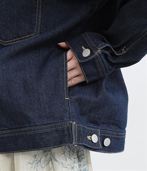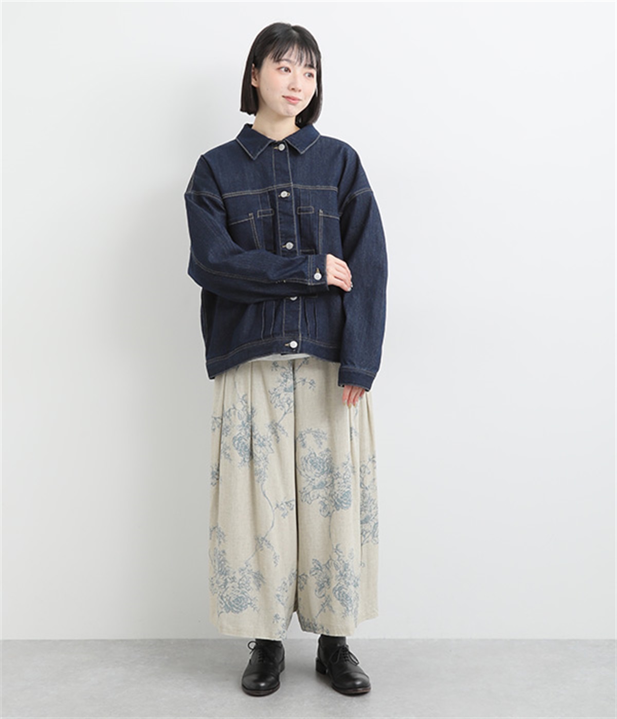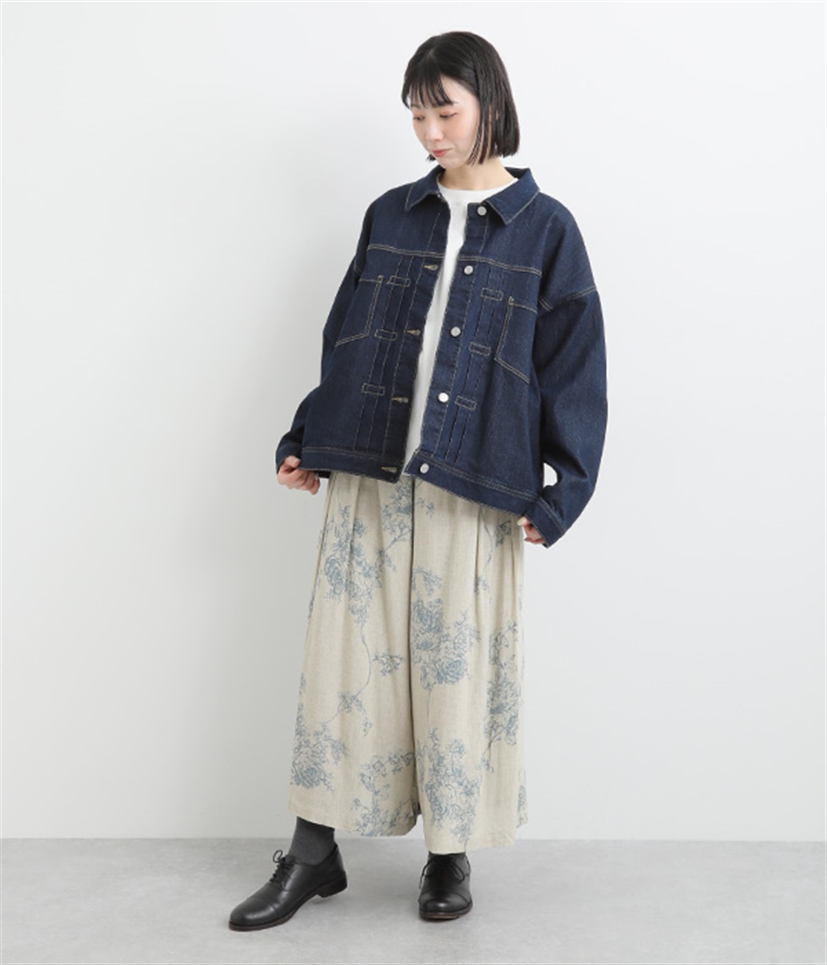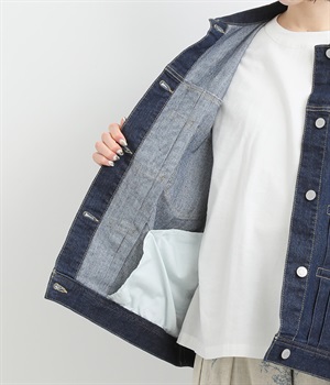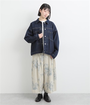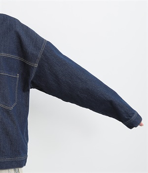 再利用可能な原料で紡ぎなおしたリサイクルデニムを使用。中肉厚でデイリー使いしやすく、ストレッチもきいていて窮屈感を軽減してくれます。インディゴ染め特有の経年変化もたのしみ。