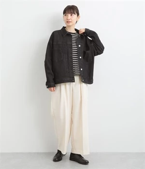 ほどよくゆったりとしたオーバーサイズがメンズライクな一着。ゆとりのあるアームホールにストレッチのきいた生地でニットなどのインナー合わせも◎