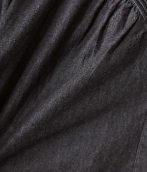 軽くてやわらかな薄手のコットンデニム生地で仕立てています。秋口から春先までロングシーズン活躍し、日常の装いに気軽に取り入れやすい生地感です。