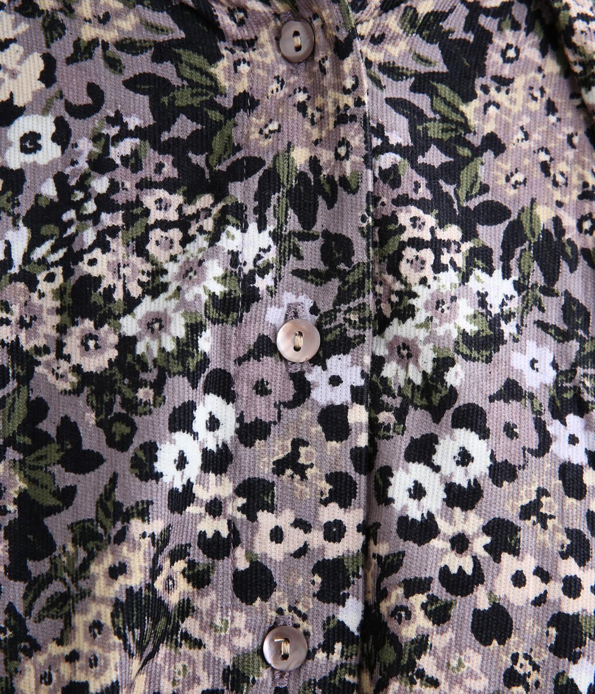 小花のブーケ柄を散りばめた、可憐な雰囲気のブラウスです。首元と袖口に入れたタックがふんわりと丸みをつくり、やさしい立体感を生み出します。ゆったりとしたシルエットで、重ね着しやすいのもうれしいポイント。薄手のタートルネックなどをインすれば、季節感のあるコーディネートが完成します。