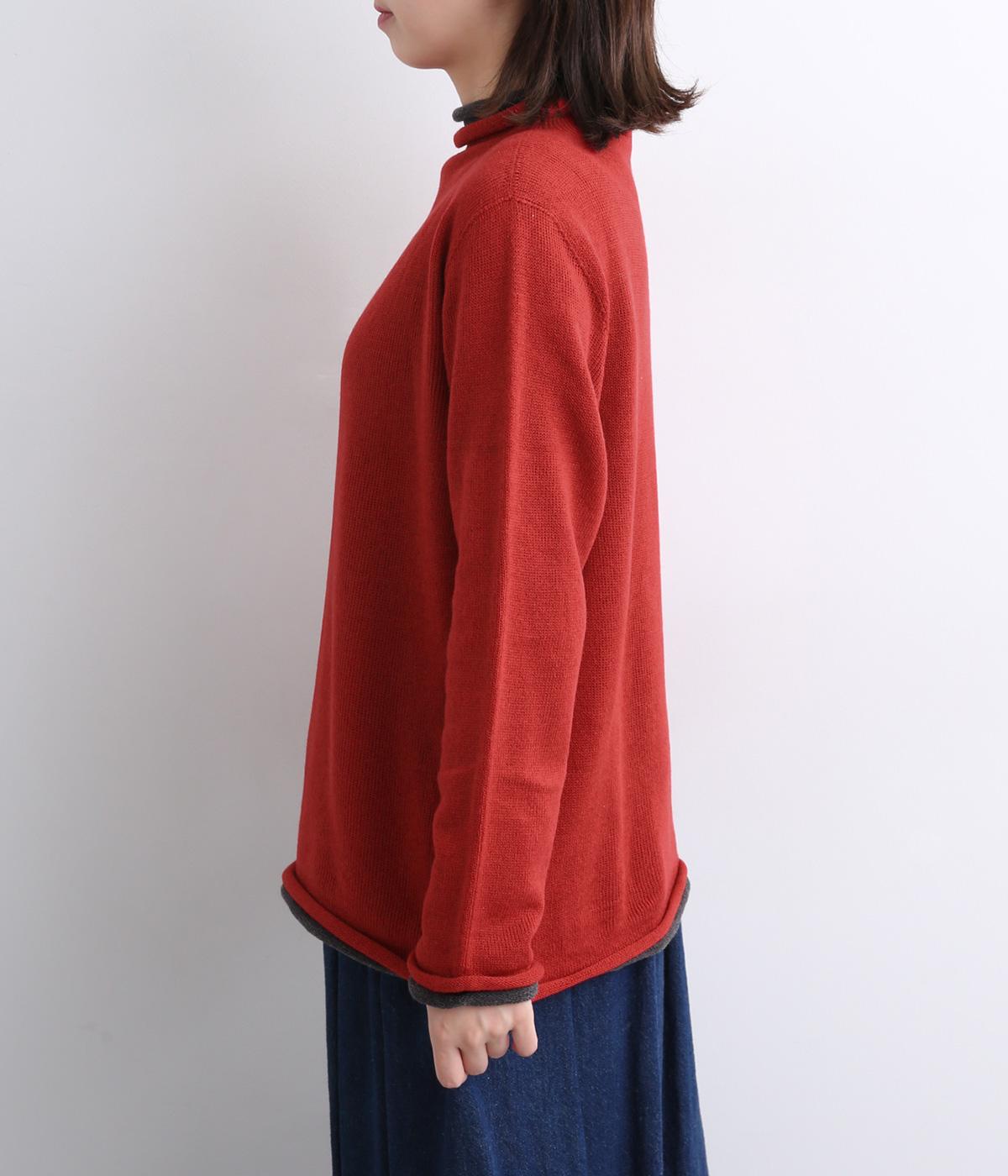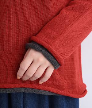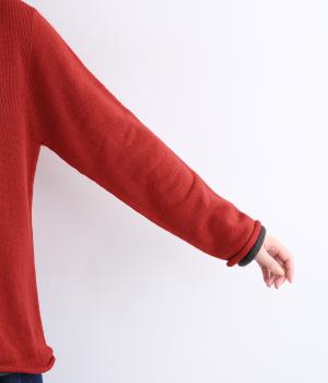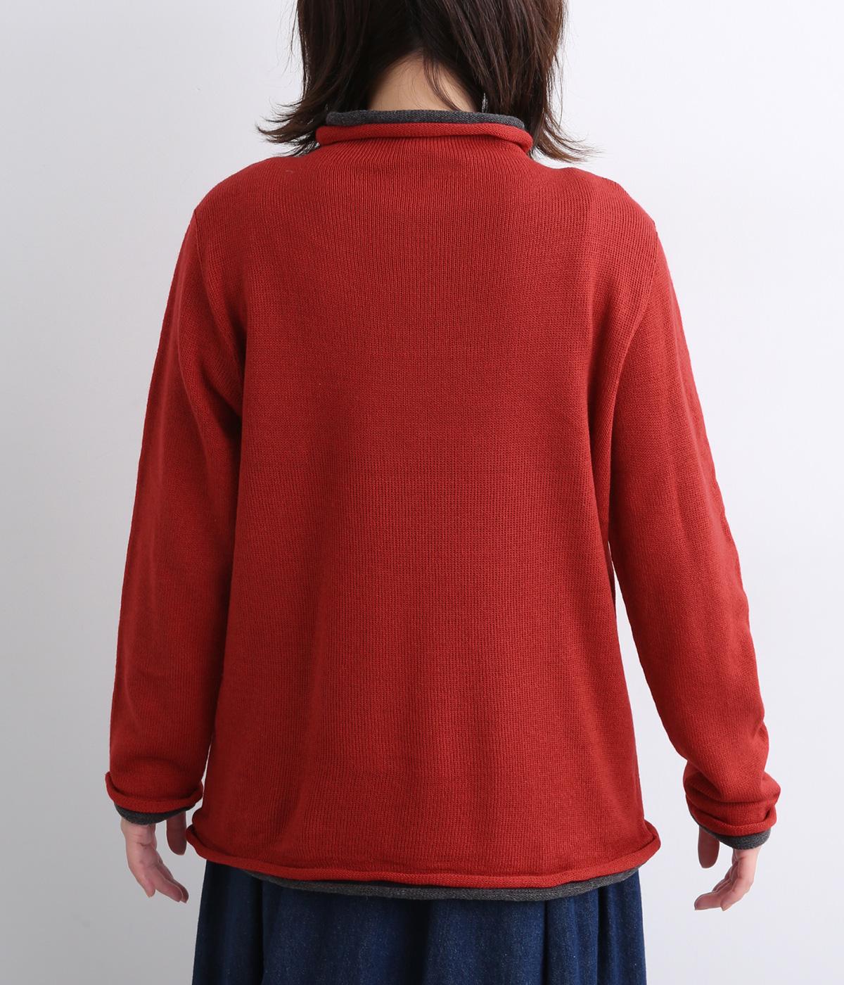 立体的に編み上げて縫い代がなく抜群の着心地を叶えるホールガーメント。ほどよい伸縮性でやわらかくふんわりと体を包み込みます。襟・袖・裾にあしらわれた配色デザインの天竺ロールもやさしい肌ざわりです。