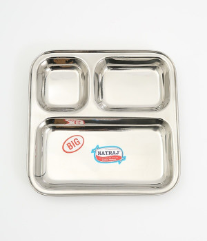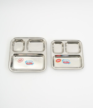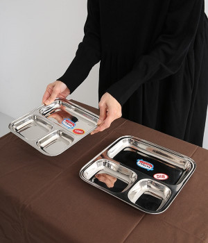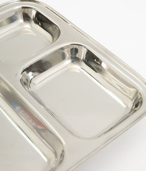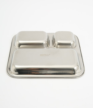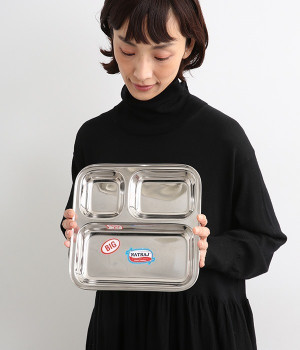 インドではカレー皿として使われている、仕切り付きの四角型ステンレストレイです。お手入れ簡単なステンレス素材なので清潔に使えて、丈夫で長持ちするのもうれしいポイントです。普段使いにも、キャンプやバーベキューなどのアウトドアにもおすすめ。仕切りがついているので食べ物の味が混ざらず、食器をいくつも用意する必要がないので後片付けも楽にできます。