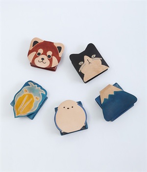 革の風合いとアニマルデザインに癒されるヤンピー製コインパース。山羊革に型押しで模様をあしらい、カラフルにペイントして作り上げました。ポケットやカバンの内ポケットに忍ばせて小銭入れとしてはもちろん、アクセサリーや予備のボタンをしまっておくなど、使い道はさまざま。バリエーションが豊富なので、デザイン違いで揃えてみるのもおすすめです。