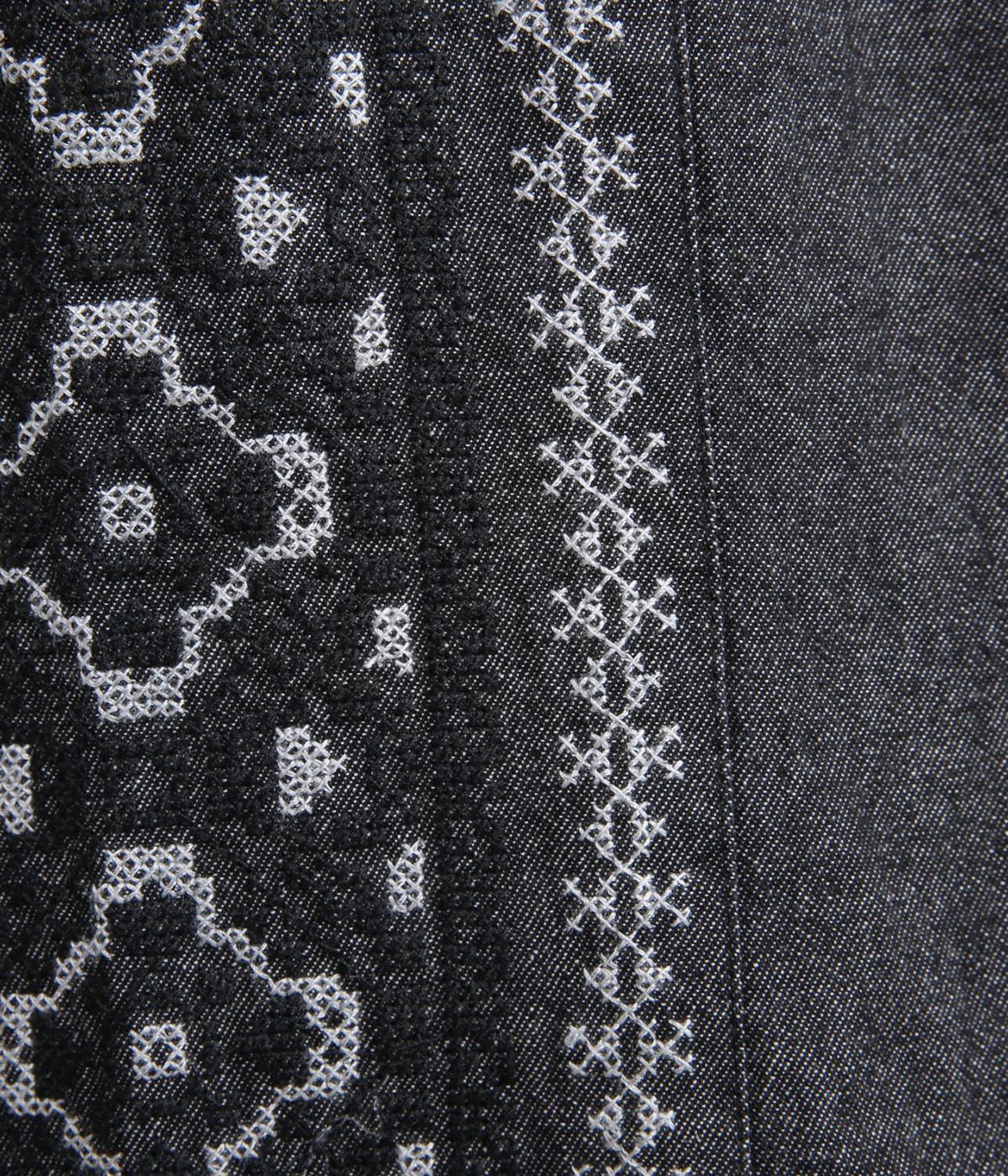 両サイドにエスニック調の幾何学刺しゅうを添えて、異国ムード漂うワイドパンツが完成。デイリースタイルにもなじみやすく、メンズライクな装いにもはまります。ウエストはオールゴム&調整紐つきです。