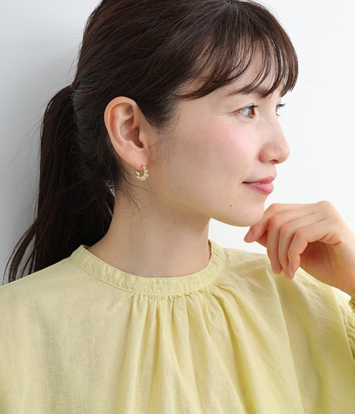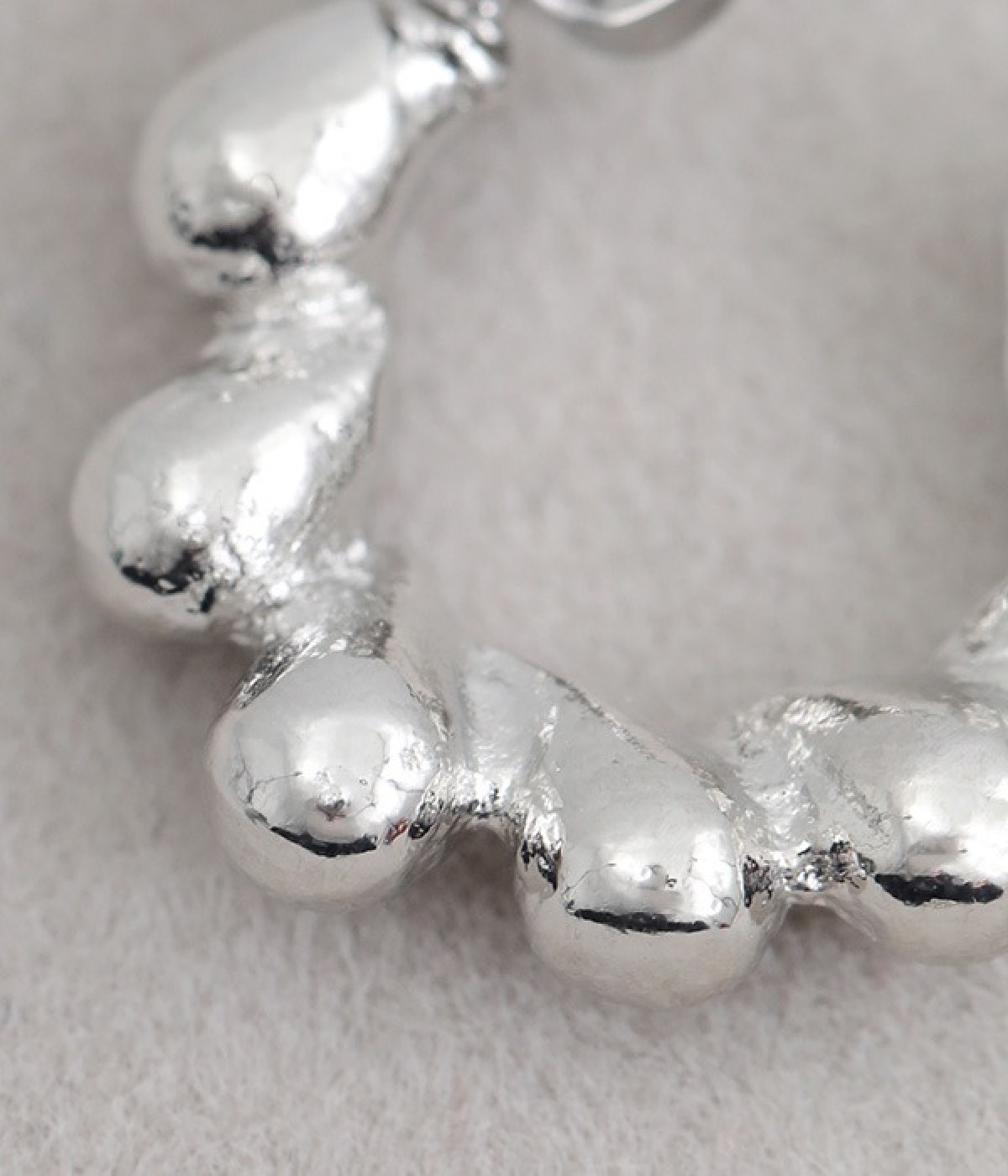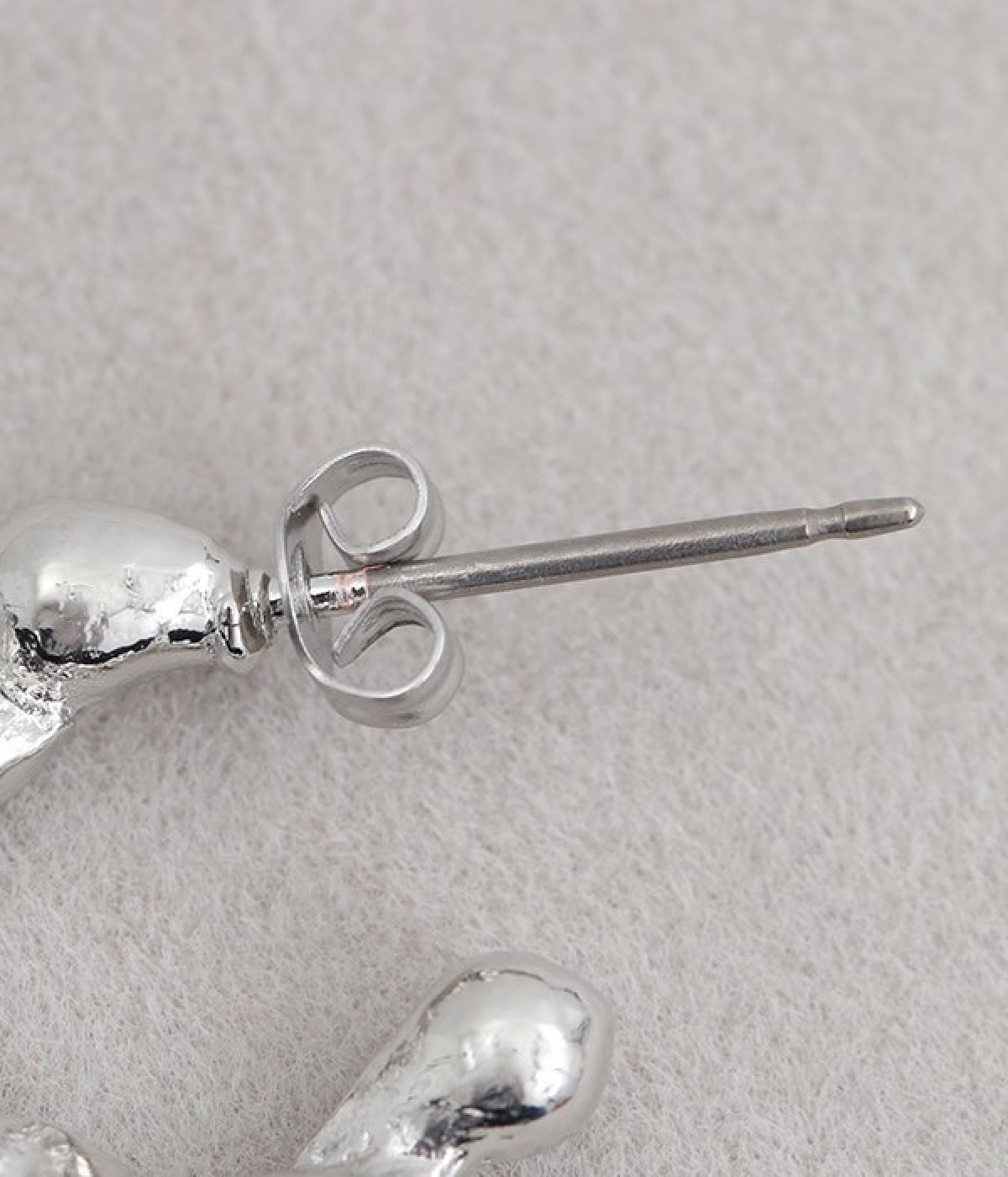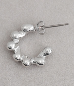 凹凸のある小ぶりなフープデザインが愛らしいピアスです。さりげなく耳に寄り添うデザインで、顔まわりを華やかに彩ります。シンプルなデザインなので、お手持ちのイヤーカフやピアスとの重ね付けもおすすめです。メタリックカラーが上品で、カジュアルな着こなしに凛とした雰囲気をプラスしてくれます。肌あたりのやさしいニッケルフリーメッキを使用しているのもポイントです。