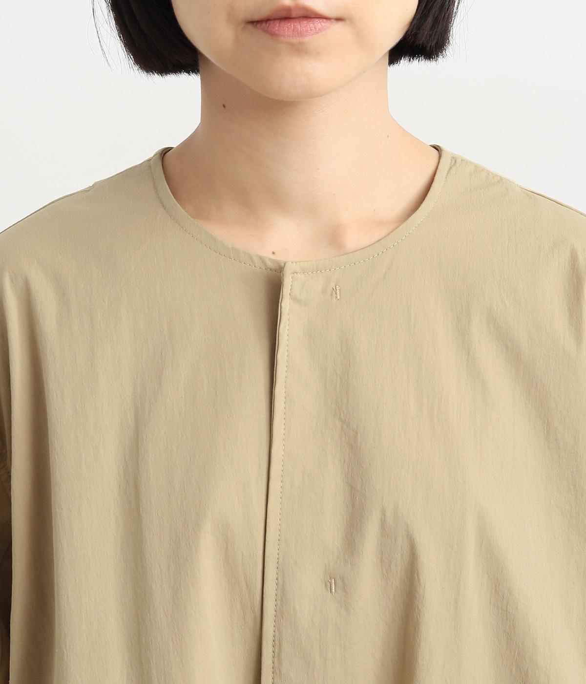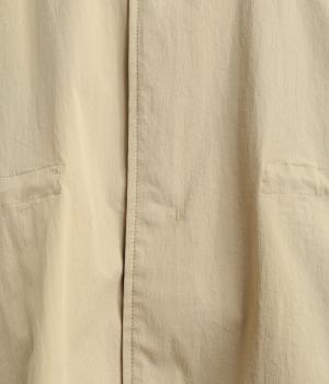コットン、ナイロンとポリウレタンの混紡素材です。やわらかい肌触りに耐久性をプラス。型崩れしにくく扱いやすい生地で、ロングシーズン着用できる軽アウターです。