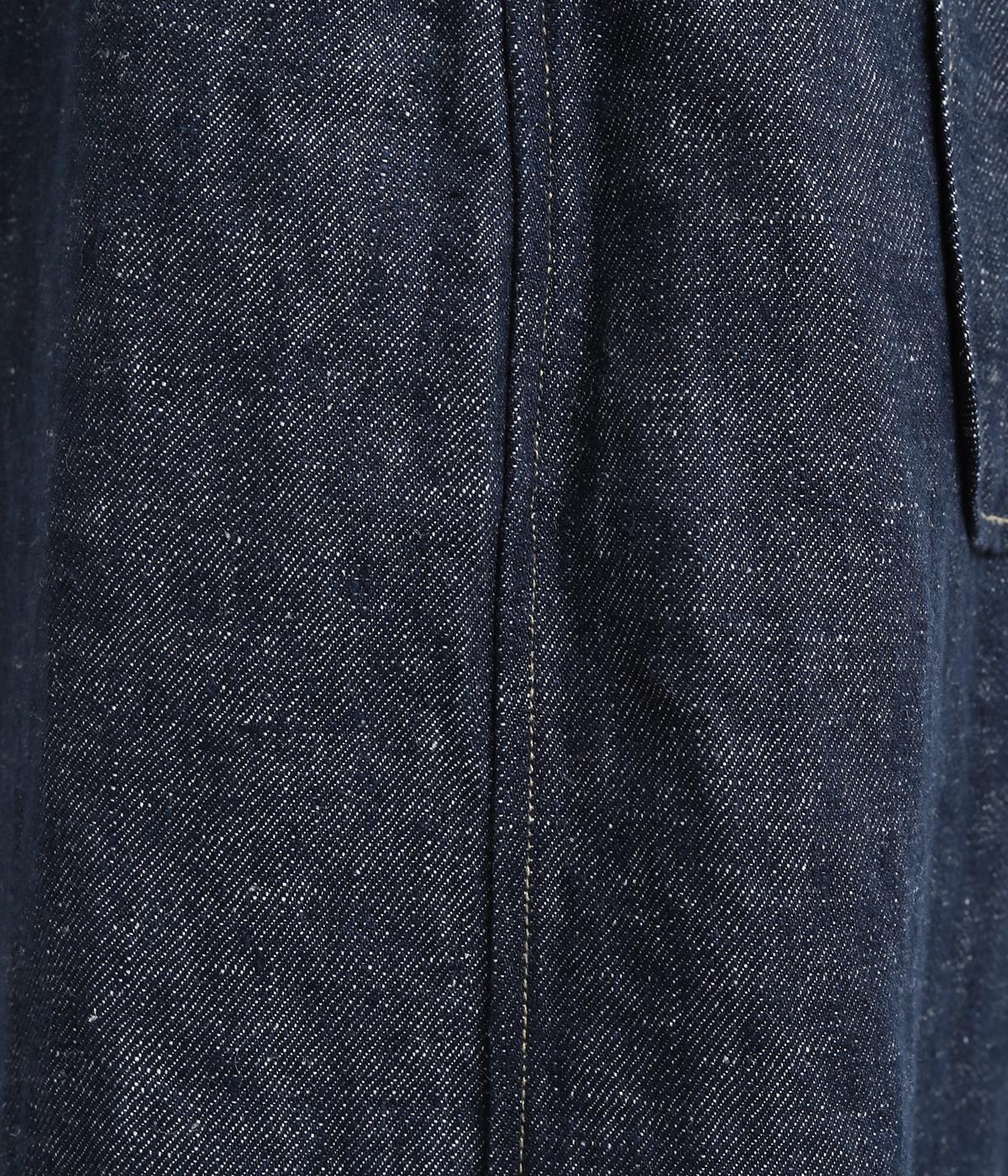 ソフトで心地よい風合いの上質なリネンデニムを使用しました。適度にゆるさをだしながらもスッキリとしたIラインシルエットに仕立てました。