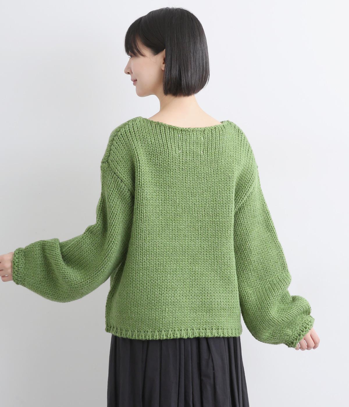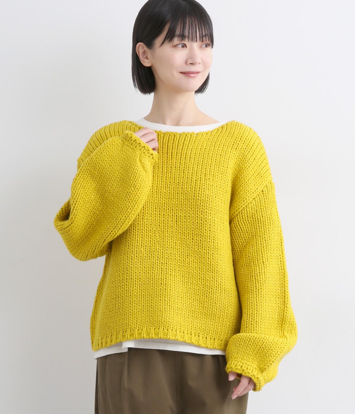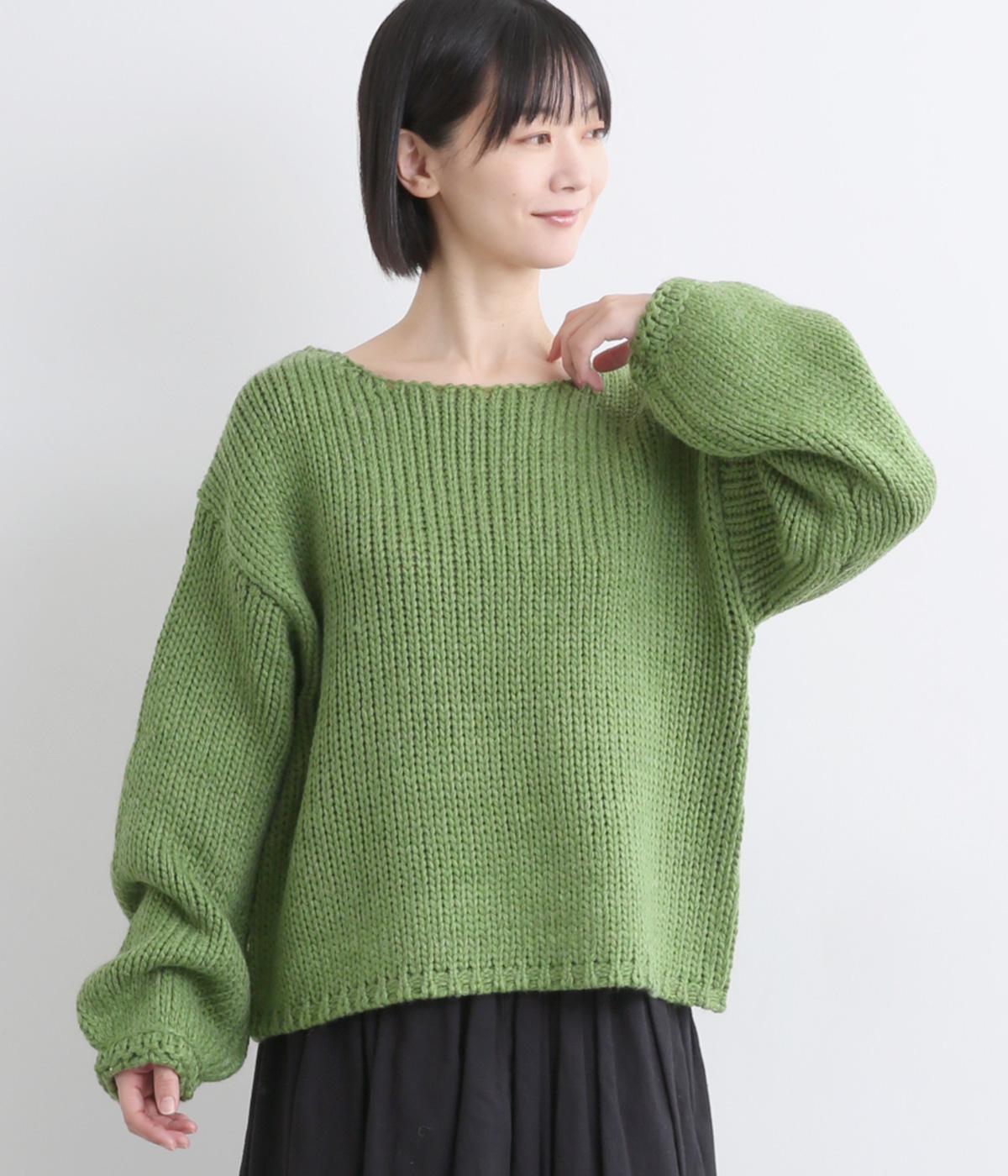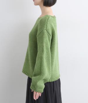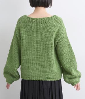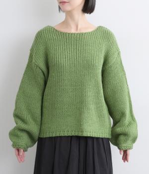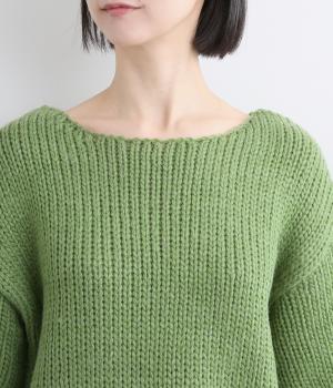 ローゲージでふんわりとボリュームのあるニットプルオーバーです。すっきり仕上げた首元が顔まわりを明るく見せ、インナーとも合わせやすいデザイン。首のうしろのタグステッチが、さりげないアクセントになっています。