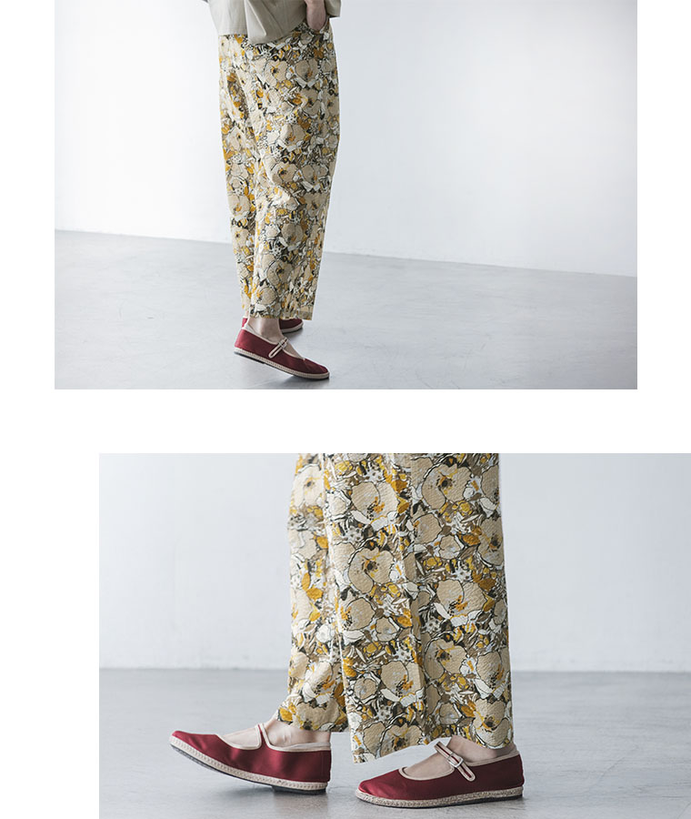 見た目の華やかさに反して扱いやすく、デイリーにも頼れる花柄ワイドパンツ。