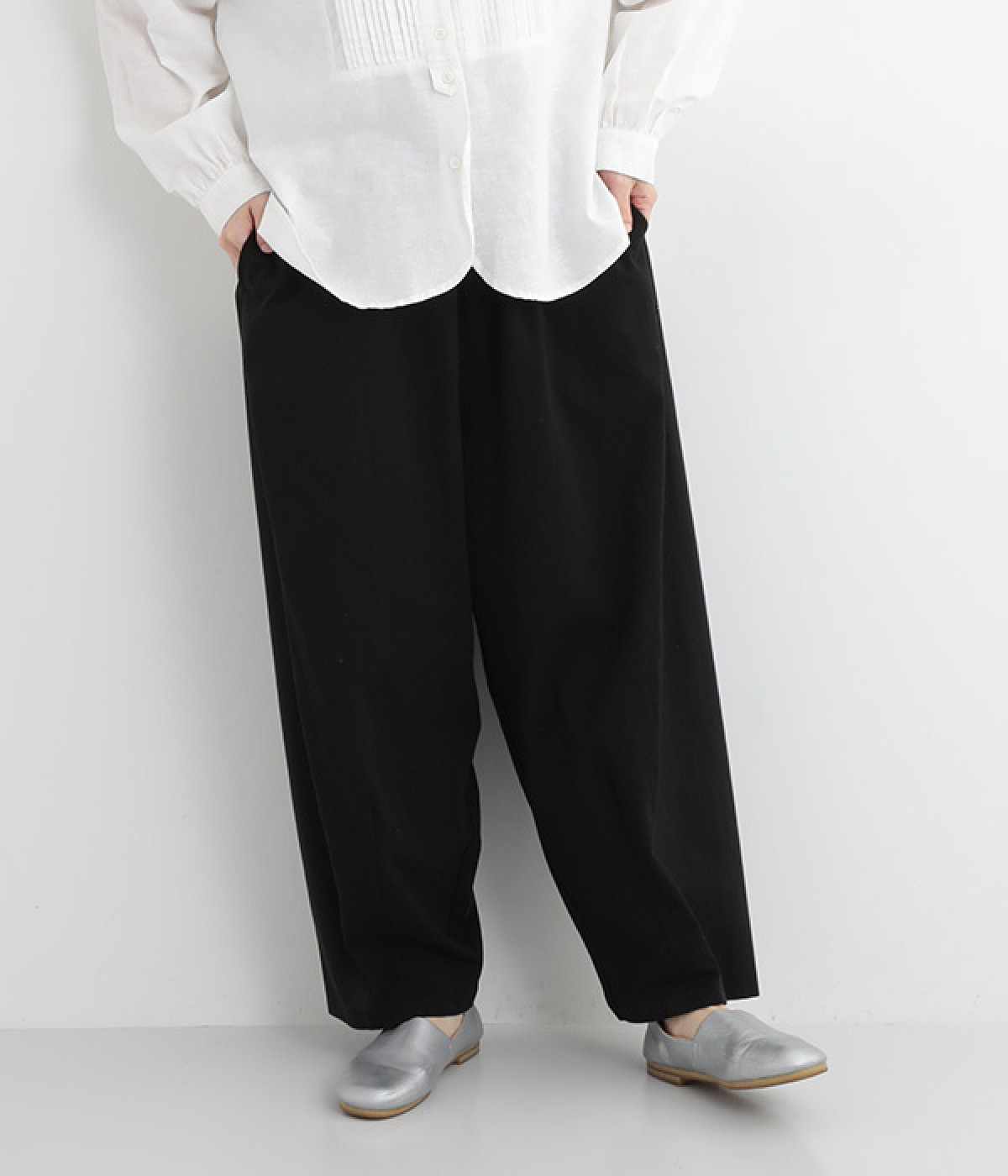 コットンリネン先染めツイル起毛裾タックワイドパンツブラック