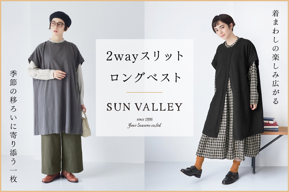 着まわしの楽しみ広がる【 SUN VALLEY 】2wayスリットロングベスト