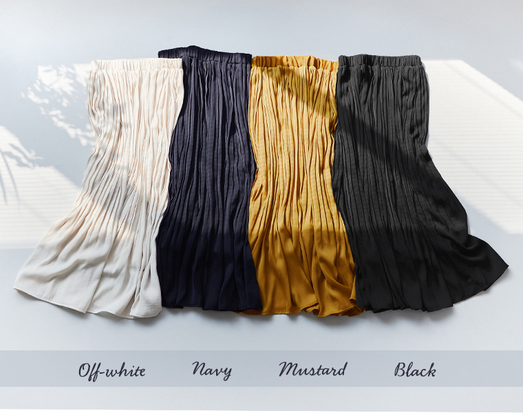 そよそよと軽やかに揺れるプリーツ。 動きに合わせてニュアンスが変わり、デイリーにも合わせやすい一枚です。