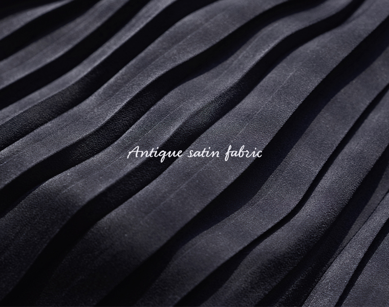 シンプルな中に映える、上質な揺らぎ。光沢を抑えたアンティーク調のサテンが、落ち着いた大人の雰囲気を引き立てます。