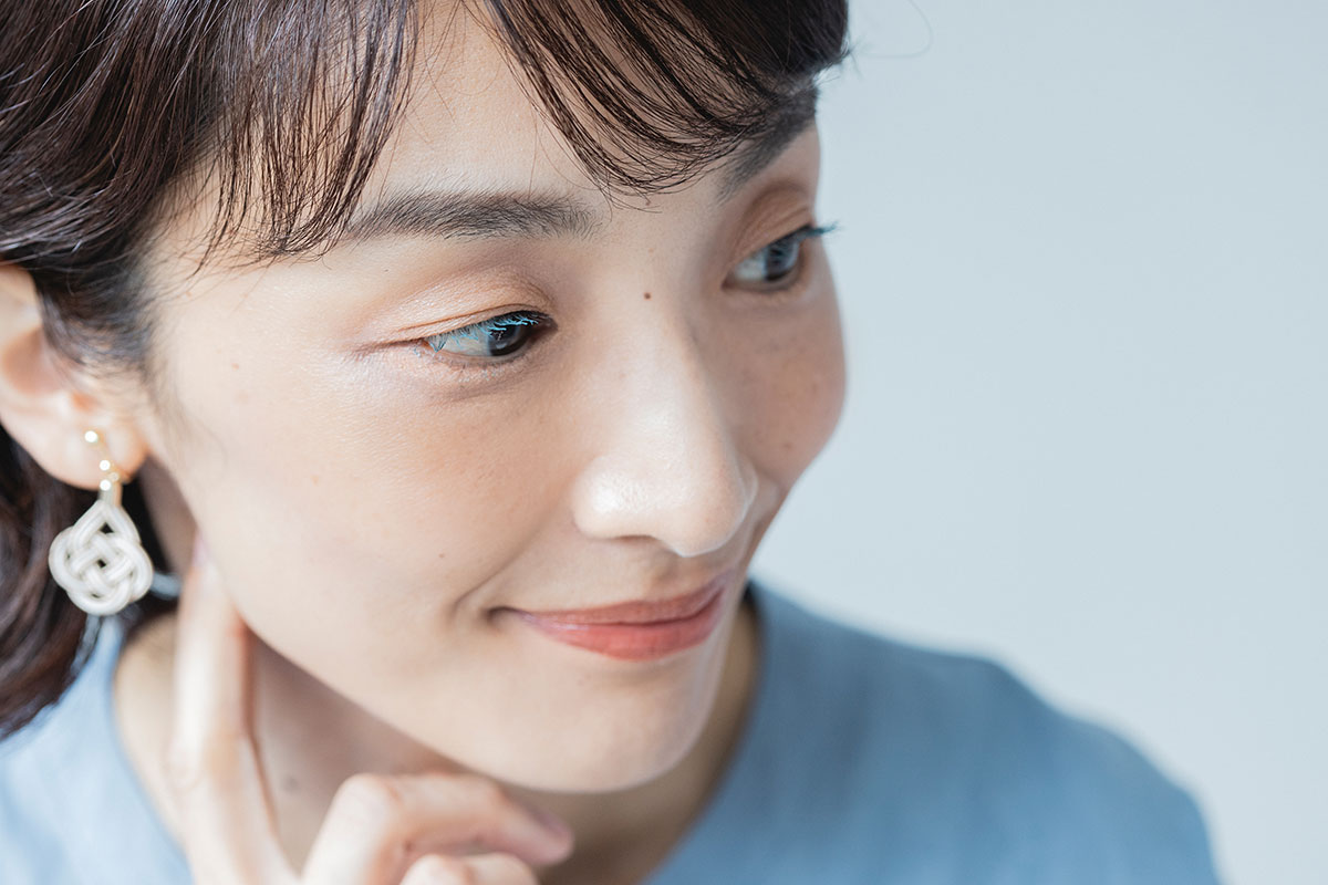 ▲イヤリング:あわじ結びイヤリング(ooie)、ブラウス:バンドカラーリネンブラウス(&yarn)第3話では、明るめリップの塗り方をご紹介します。