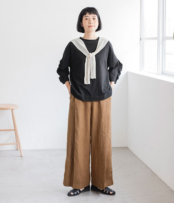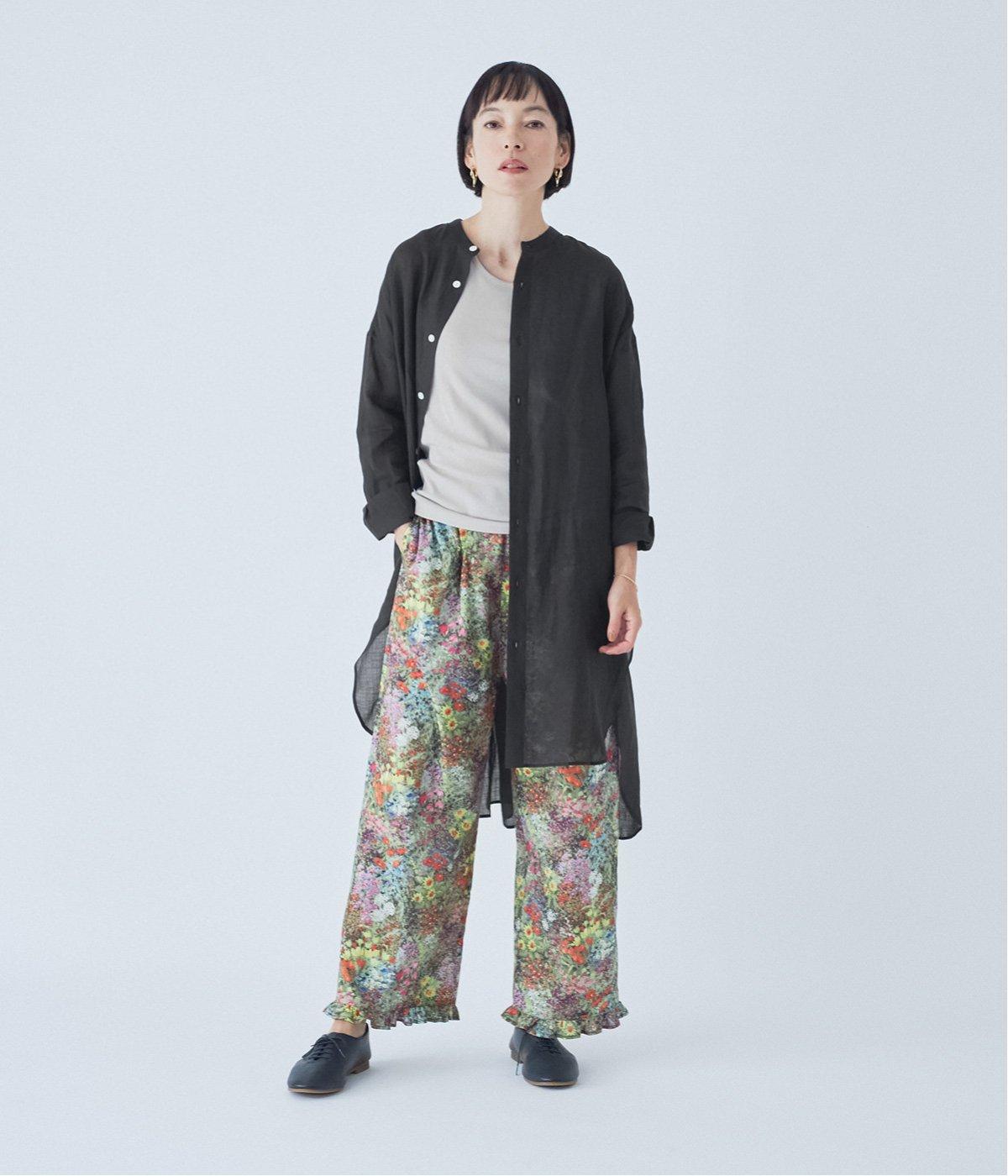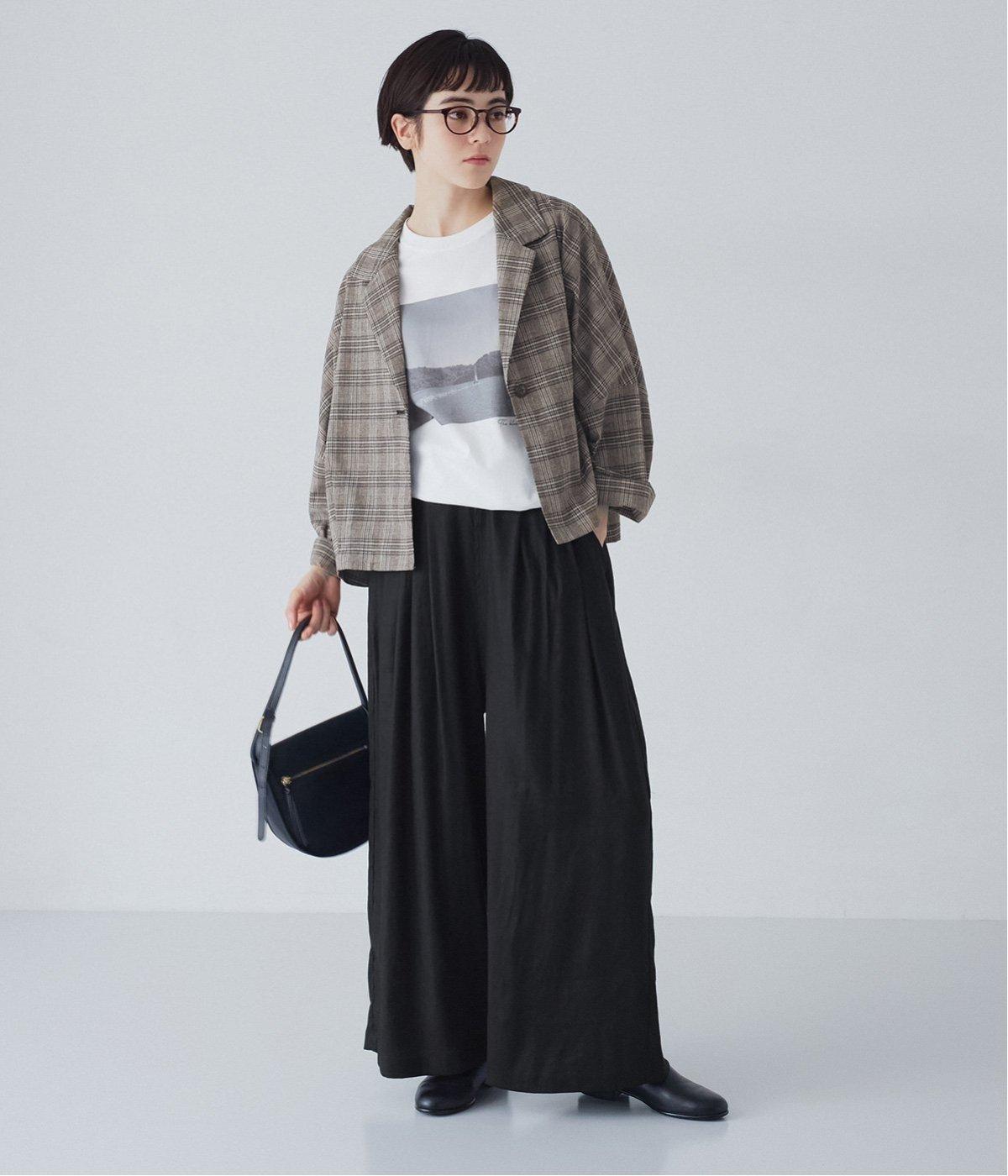 ヒップラインが気になる方には、腰回りにゆとりがありつつすっきり見えるテーパードパンツなどや、視線が分散される柄アイテムがおすすめです。