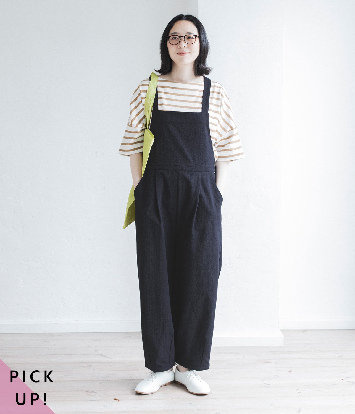 お腹まわりが気になってきた方におすすめなのは、ゆったりしたシルエットのワンピースやトレンド感もあるサロペットです。